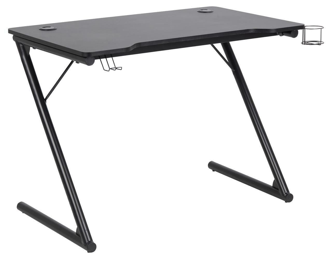 ACTONA biurko TROOPER jest idealne dla miłośników gier komputerowych o prostym, nowoczesnym kształcie. Wyposażone w uchwyt na kubek i wieszak na słuchawki.Blat wykonany z płyty MDF pokrytej czarnym laminatem oraz metalowej podstawy lakierowanej na czarny mat. Wymiary: wys. 74 cm / szer. 100 cm / gł. 64 cmSposób wysyłki: półpaleta.