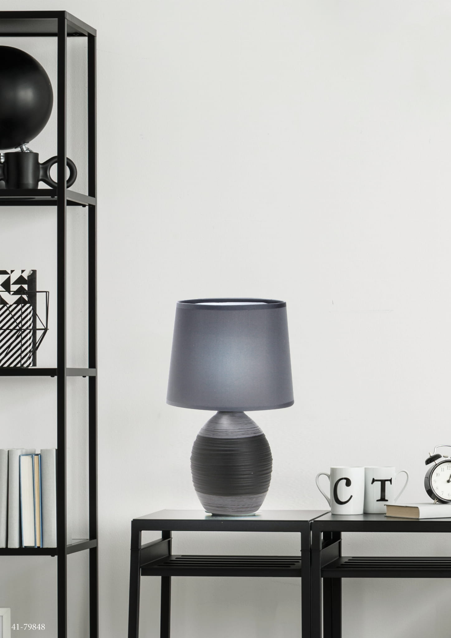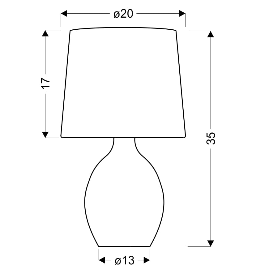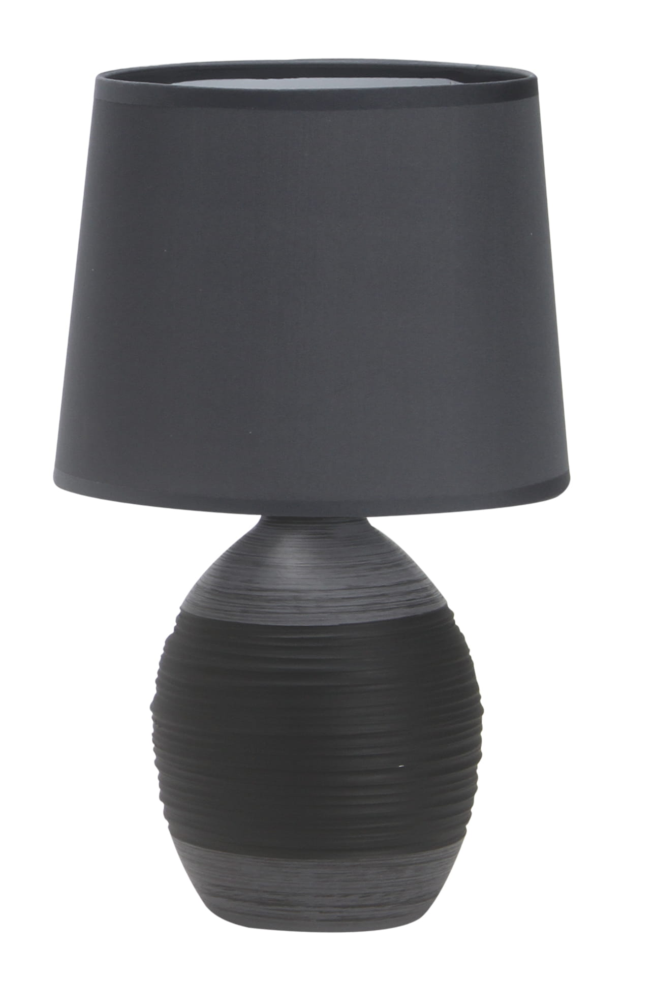 Nie zawiera głównego źródła światła Trzonek: E14 Moc max (W): 40 Materiał: podstawa ceramiczna, abażur tkanina+PCV Kolor: czarny