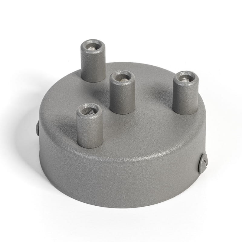 • metalowa maskownica sufitowa malowana proszkowo w kolorze ciemnoszarym strukturalnym z mieniącymi drobinkami srebra • możliwość zamontowania czterech przewodów • średnica ~80mm • wysokość ~30mm • 4 x mosiężna blokada kabla w zestawie • doskonale dopasowana do kabli 2 X 0.75mm2