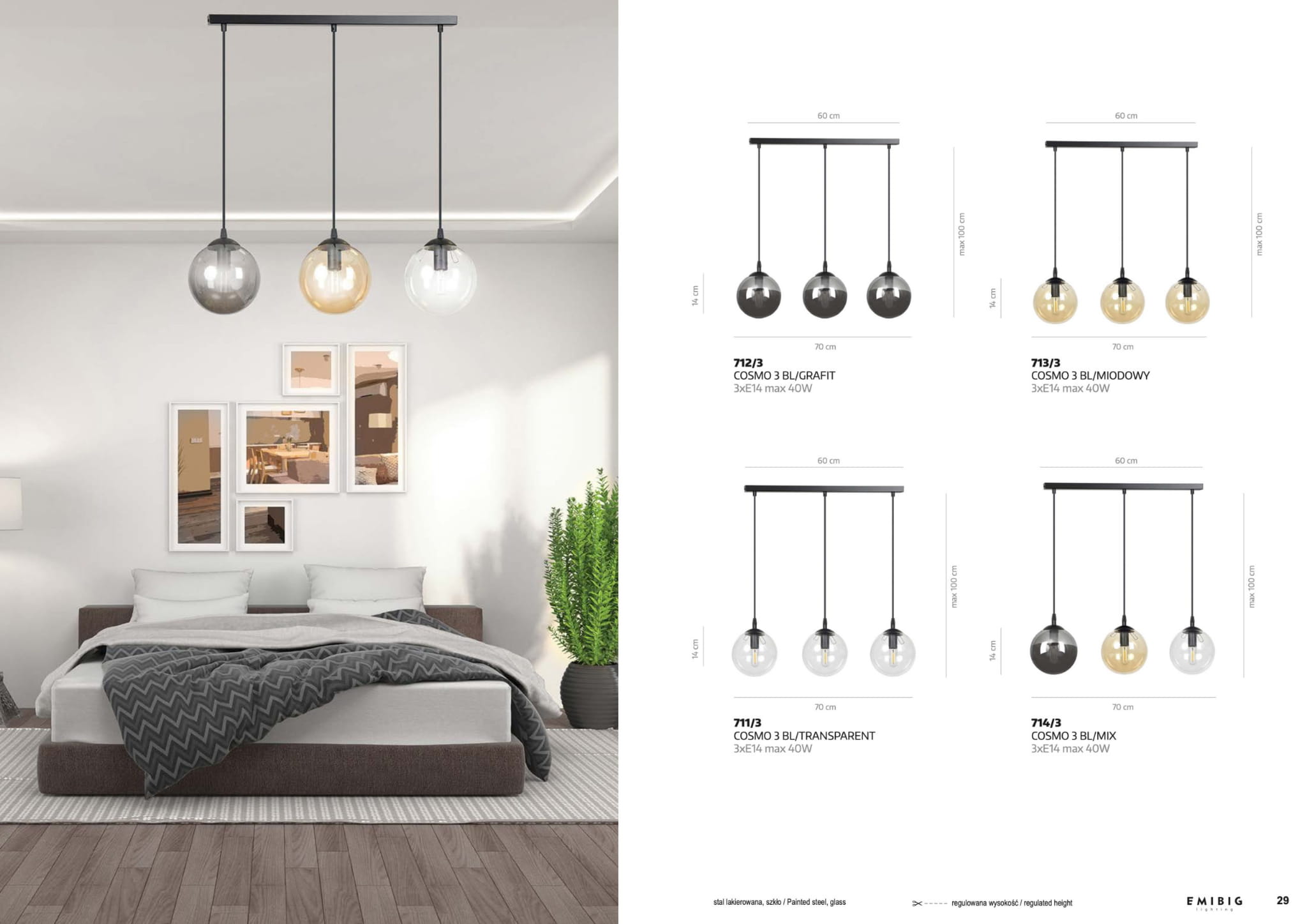 Seria COSMO to uniwersalna i ponadczasowa kolekcja lamp sufitowych. Jej Minimalistyczny styl wpisuje się w najnowsze trendy, a jednocześnie zachowuje ponadczasową elegancję. Najmodniejsze szklane klosze zapewniają doskonałe doświetlenie pomieszczenia. Niepowtarzalny design serii COSMO zachwyca, a różne kolory kloszy dają swobodę wyboru. To polski produkt, wyróżniający się doskonałą jakością wykonania.