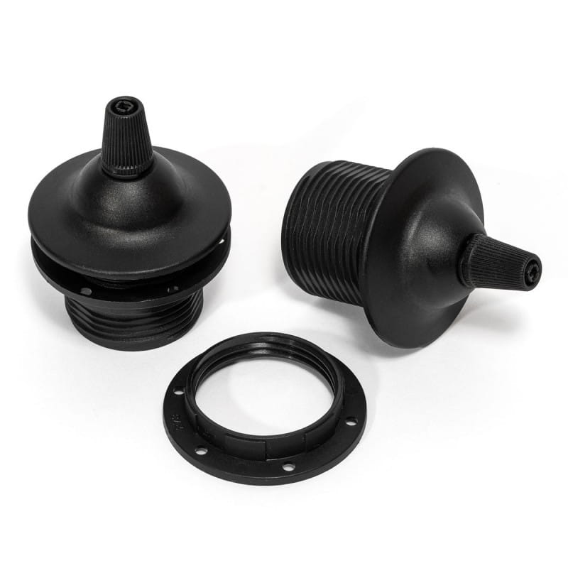 Czarna plastikowa oprawka żarówki z dwoma pierścieniami umożliwiającymi montaż klosza lub abażuru oprawka E27 Kolorowe Kable