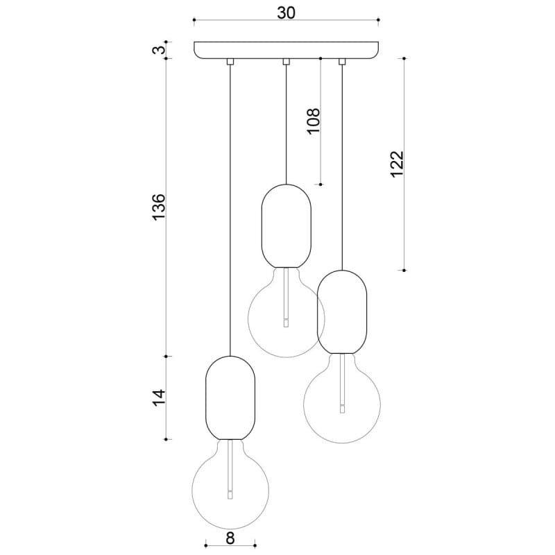 Drewniana lampa sufitowa Loft Barille 3P E27 lampa wisząca kaskadowo KOLOROWE KABLE