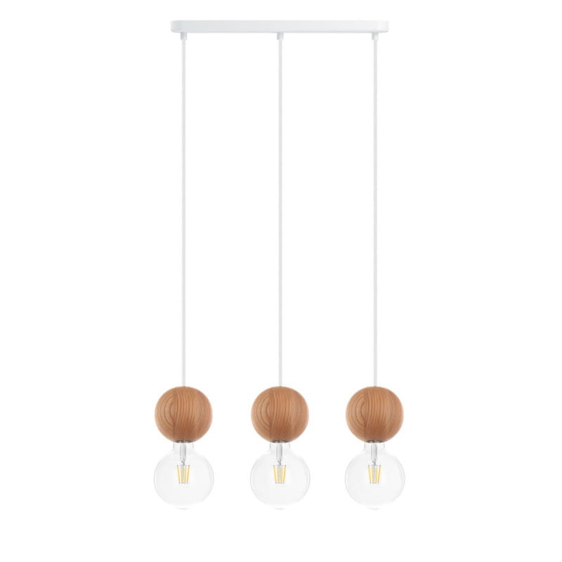 Drewniana lampa sufitowa Loft Sferni 3L E27 lampa wisząca na listwie KOLOROWE KABLE