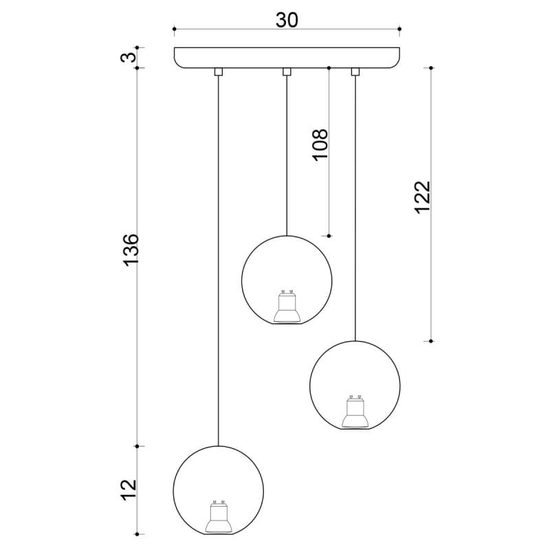 Drewniana lampa sufitowa Loft Sferni 3P GU10 lampa wisząca kaskadowo KOLOROWE KABLE
