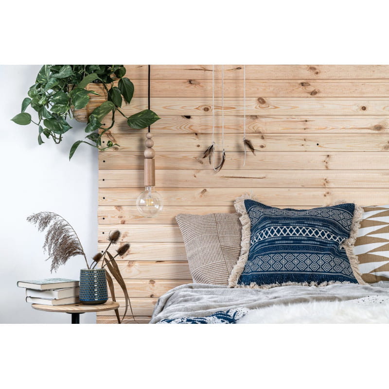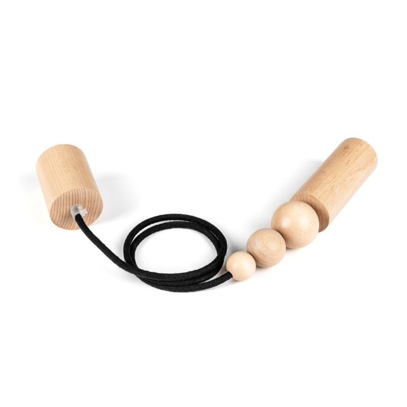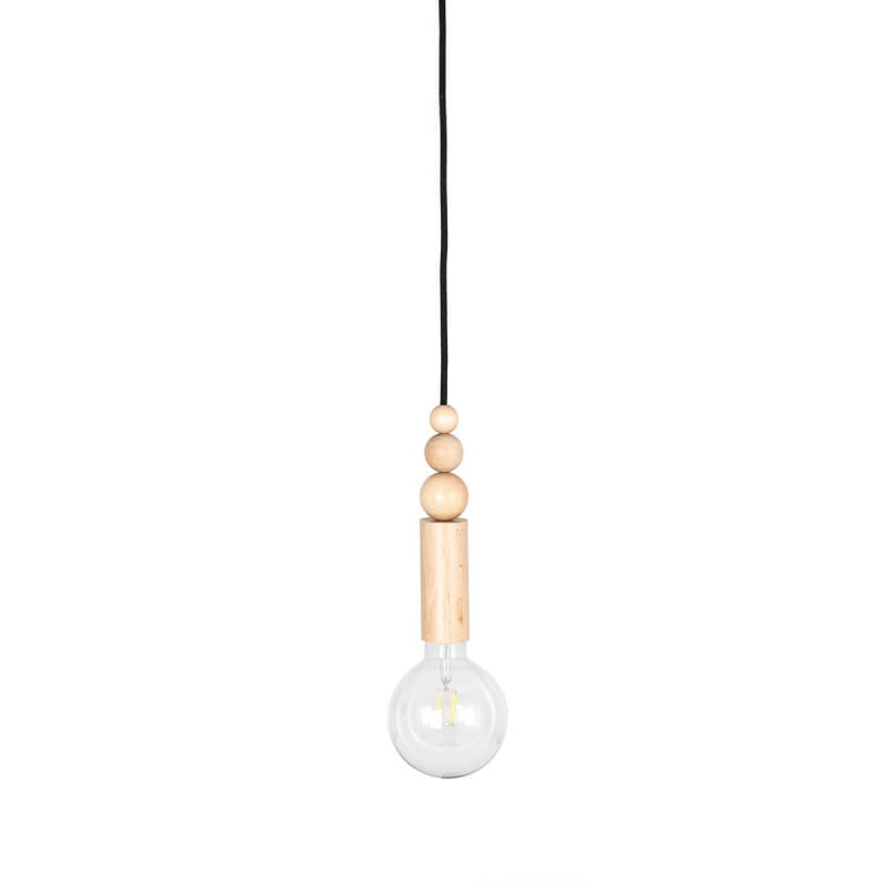 Drewniana lampa wisząca z koralikami Loft Rullo z przewodem w czarnym bawełnianym oplocie KOLOROWE KABLE
