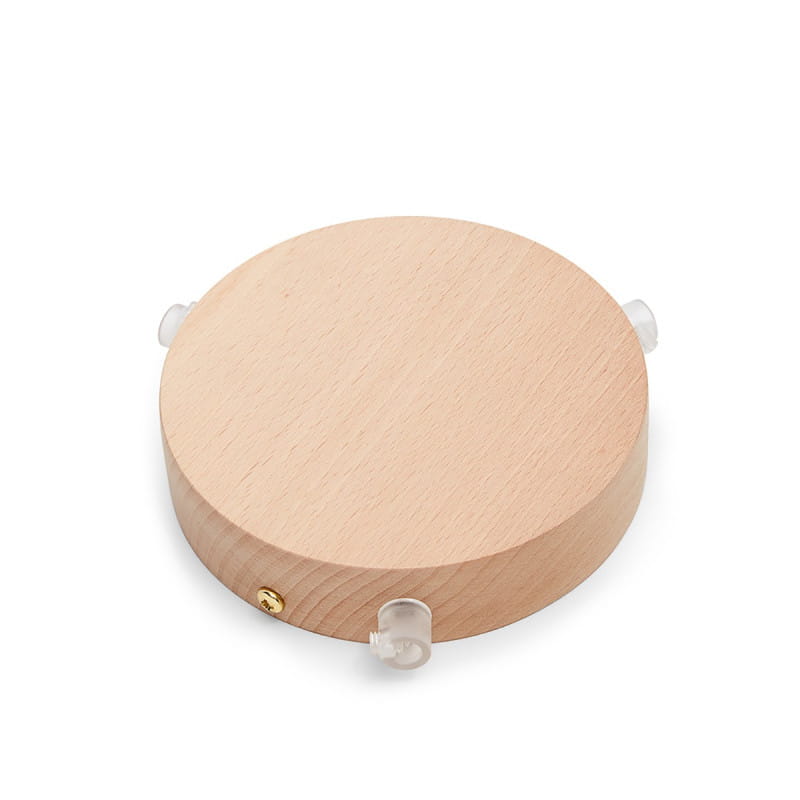 • drewniana maskownica sufitowa • możliwość zamontowania trzech kabli wychodzących z boku podsufitki • średnica ~130mm • wysokość ~28mm • 3x przezroczysta blokada kabla w zestawie • doskonale dopasowana do kabli 2 X 0.75mm2