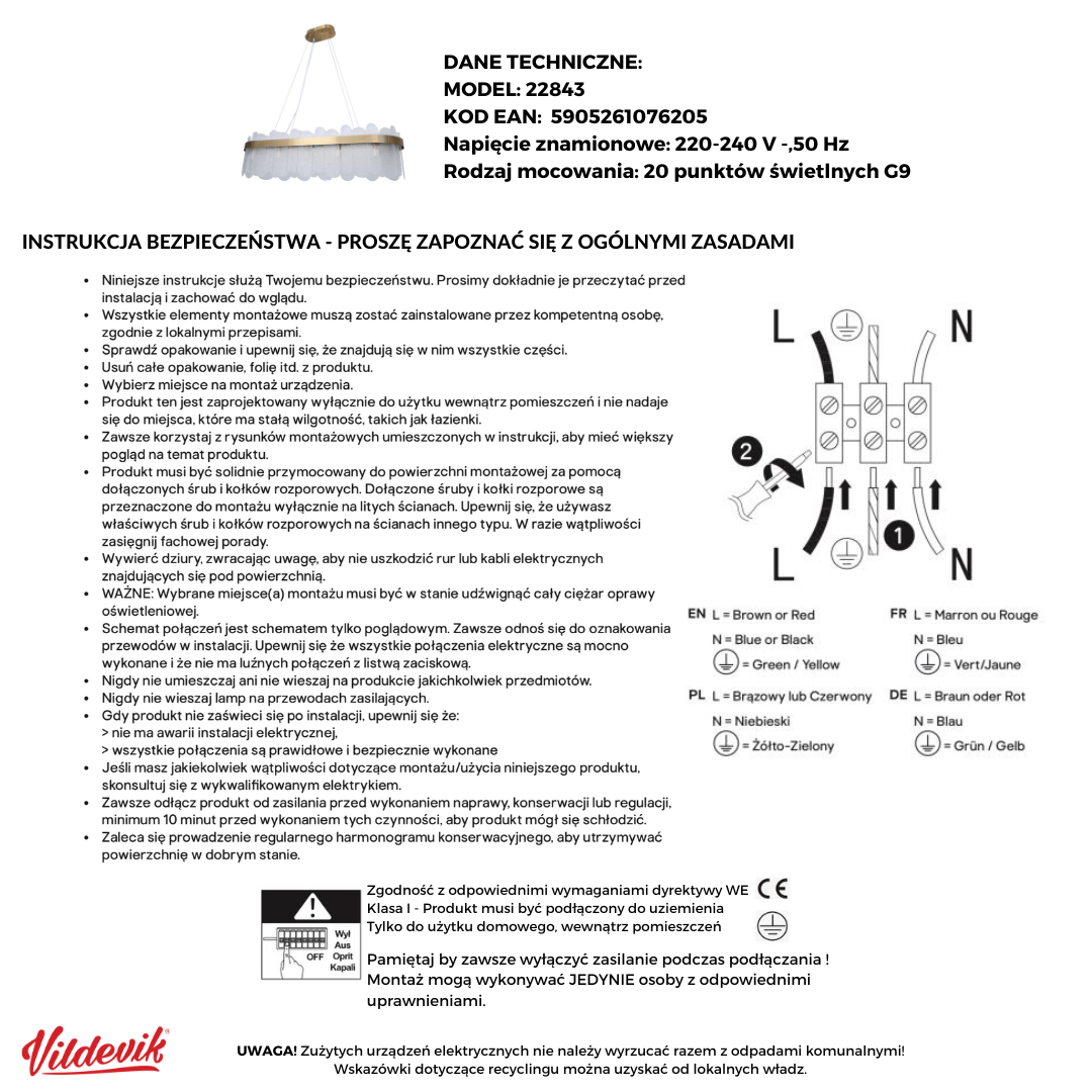 Lampa zasilana źródłem 20 punktów świetlnych G9 będzie idealnym rozwiązaniem do oświetlenia dużych powierzchni.