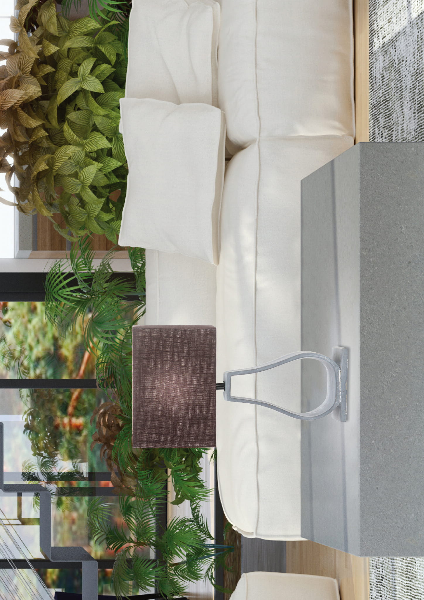 Nie zawiera głównego źródła światła Trzonek: E27 Moc max (W): 60 Materiał: podstawa beton architektoniczny, abażur tkanina+PCV