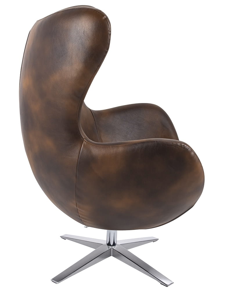 Fotel Egg Szeroki Pu Brąz Vintage Czekolada
