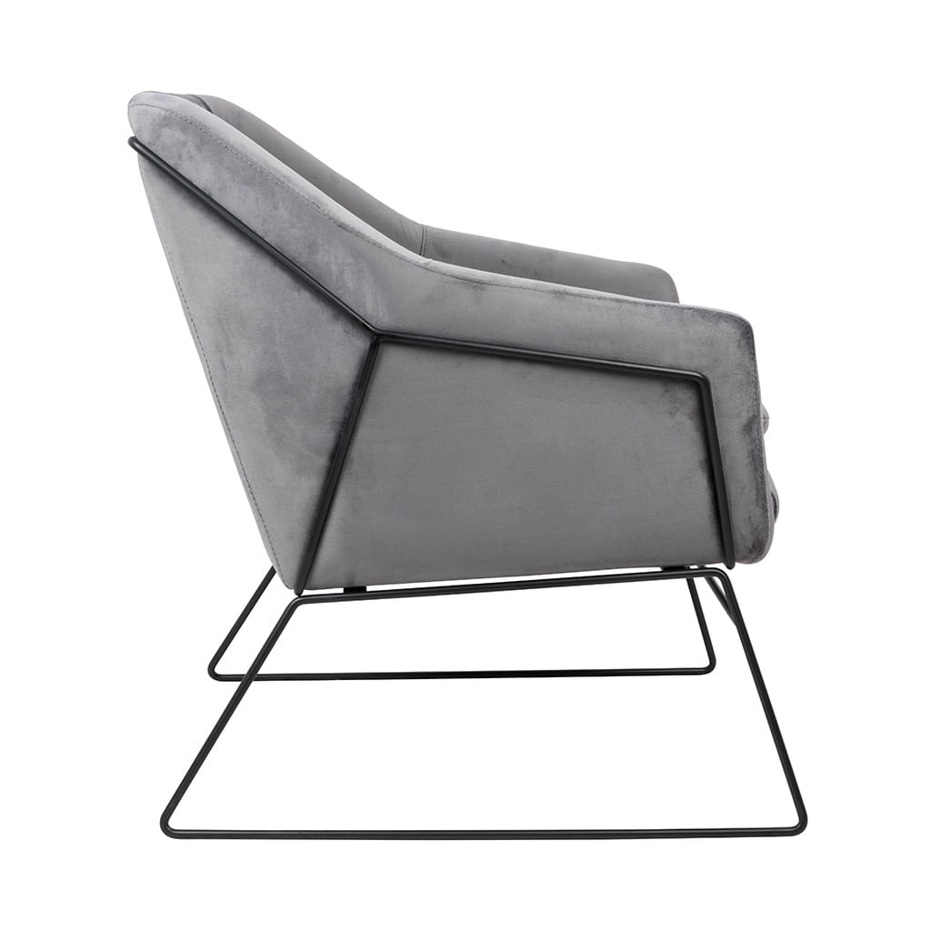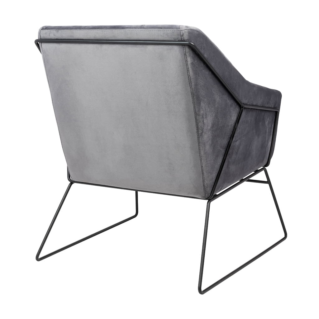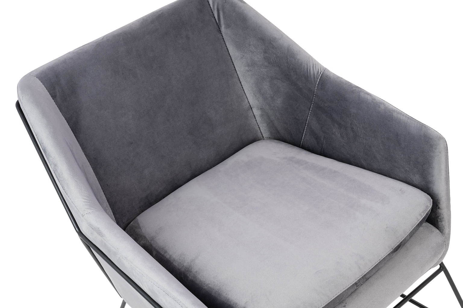 Fotel EMMA.Siedzisko oraz poduszka tapicerowane są aksamitnym welurem w ciemnoszarym kolorze. Metalowa podstawa lakierowana na kolor czarny nadaje Emmie oryginalnego charakteru.Możliwość personalizacji obicia, wyjątkowy design oraz solidne wykonanie sprawia, że fotel doskonale odnajdzie się w każdej aranżacji.Wymiary: wys. 77 cm / szer. 65 cm / gł. 70 cmWysokość do krawędzi siedziska: 39 cmWysokość do podłokietników: 56 cmSiedzisko: gł. 52 cmPoduszka: szer. 55 cm / gł. 47 cm / wys. 6 cmSposób wysyłki: paleta.