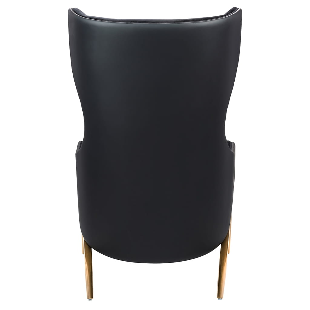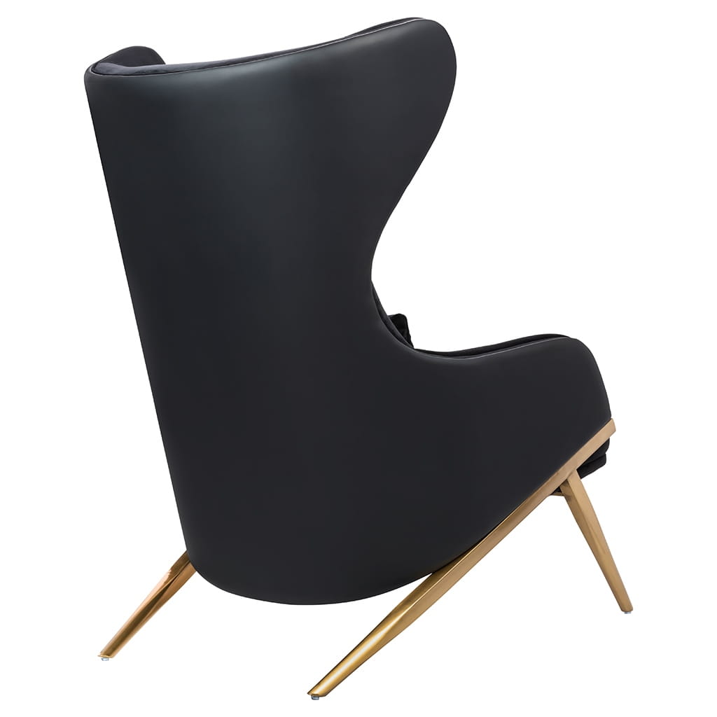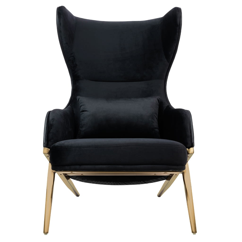 Fotel HAMPTON.Siedzisko oraz poduszka tapicerowane są aksamitnym welurem w kolorze czarnym. Tył fotela został obszyty czarną ekoskórą. Metalowa podstawa o ciekawym kształcie w kolorze złotym podkreśla nowoczesny charakter fotela.Możliwość personalizacji obicia, wyjątkowy design oraz solidne wykonanie sprawia, że Hampton doskonale odnajdzie się w każdej aranżacji.Wymiary: wys. 110 cm / szer. 71 cm / gł. 90 cmWysokość do krawędzi siedziska: 43 cmWysokość do podłokietników: 56 cmSiedzisko: gł. 59 cmPoduszka: 45 cm / 30 cm / 6 cmWaga netto: 26 kgSposób wysyłki: paleta.