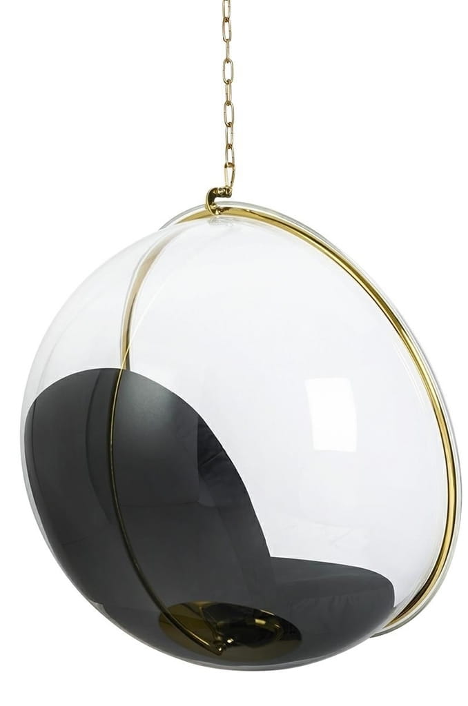 Fotel wiszący BUBBLE.Korpus fotela wykonany został z wysokiej jakości transparentnego akrylu. Wewnątrz znajdują się dwie welurowe poduchy w kolorze czarnym. Całość zawieszona na wytrzymałym łańcuchu, który mocowany jest do sufitu za pomocą specjalnych kotw. Bubble będzie świetnym dodatkiem wnętrza, podkreślając styl i charakter całego domu. Fotel dostępny również w wersji stojącej Bubble Stand.Wymiary: wys. 295 cm / szer. 115 cm / gł. 100 cmMateriał: akrylUdźwig: do 120 kgŁańcuch: dł. 182 cmWaga netto: 25 kgWymiary opakowania: 115 cm / 113 cm / 71 cmSposób wysyłki: paleta.