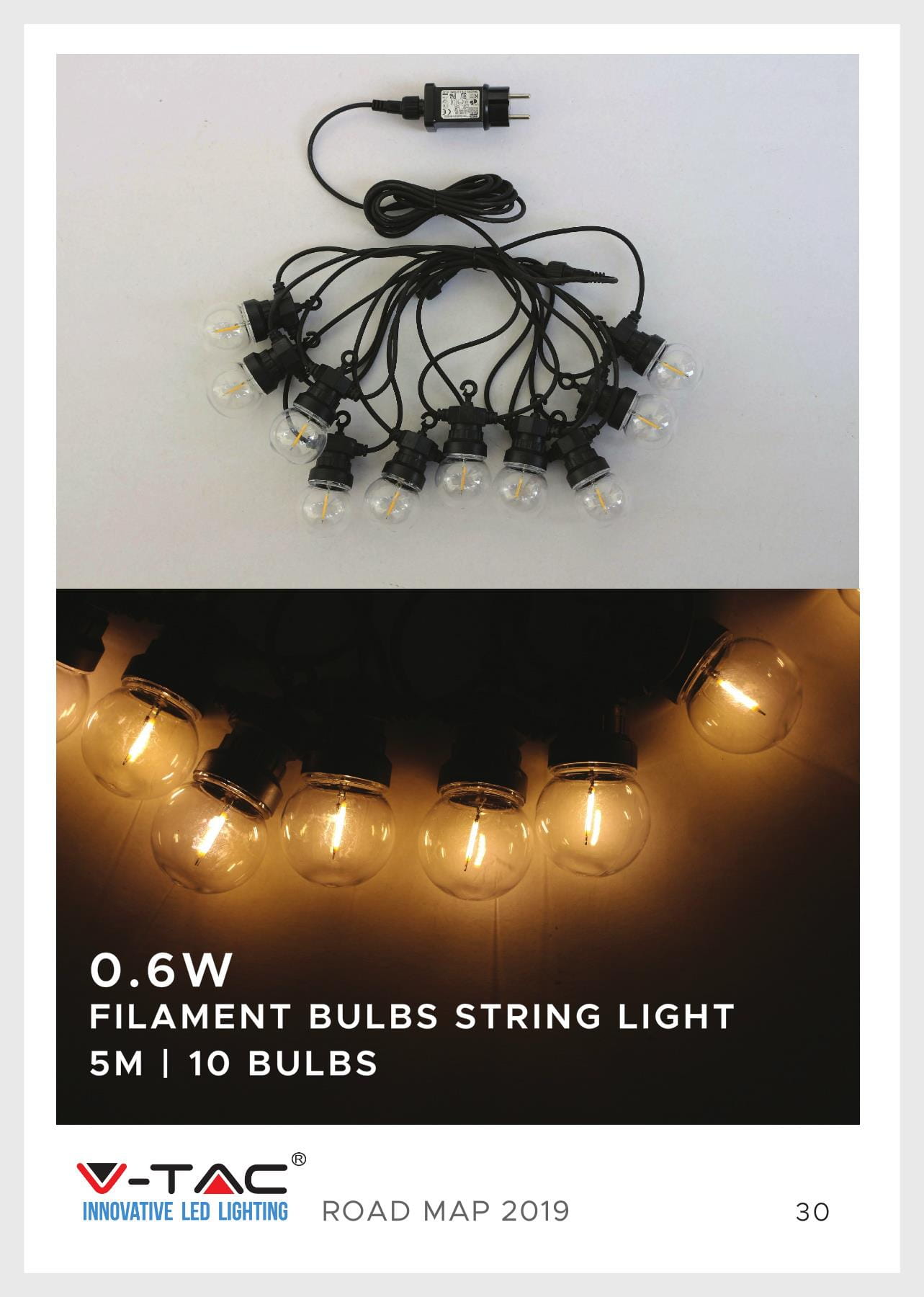 Girlanda Ogrodowa Solarna LED V-TAC 5 metrów 10 żarówek Filament VT-71010 3000K 100lm