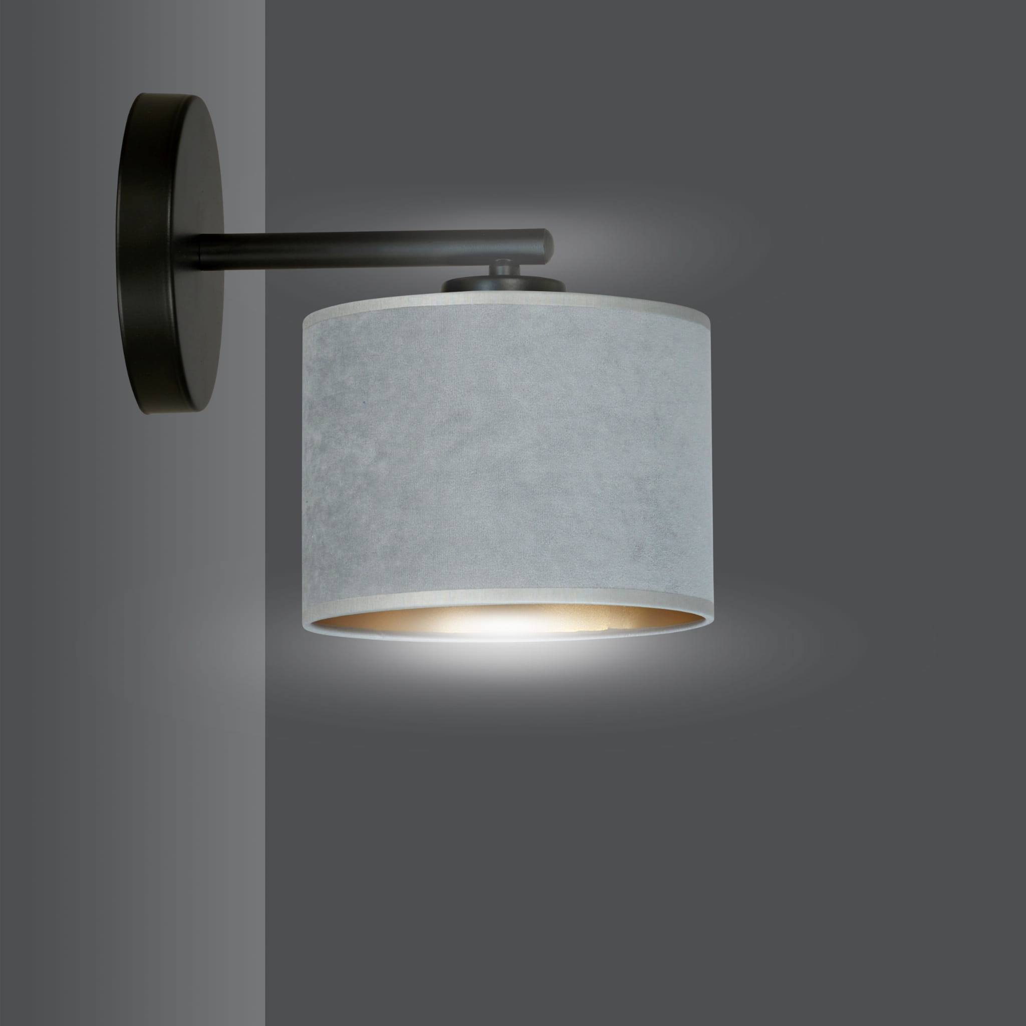 HILDE to kinkiet z serii lamp abażurowych idealnych do nowoczesnych i klasycznych wnętrz. Doskonale pasuje do salonu, sypialni i wszelkich loftowych pomieszczeń, tworząc niepowtarzalny nastrój. Kinkiet HILDE doskonale spełnia swoją funkcję będąc jednocześnie pięknym elementem dekoracyjnym. Abażury wykonane z trwałego materiału o welurowej fakturze ze złotym środkiem. Prosta konstrukcja i elegancka kolorystyka. Abażury dostępne w kolorze czarnym, białym, szarym, zielonym i różowym. Produkt w 100% polski wykonany z materiałów najwyższej jakości.