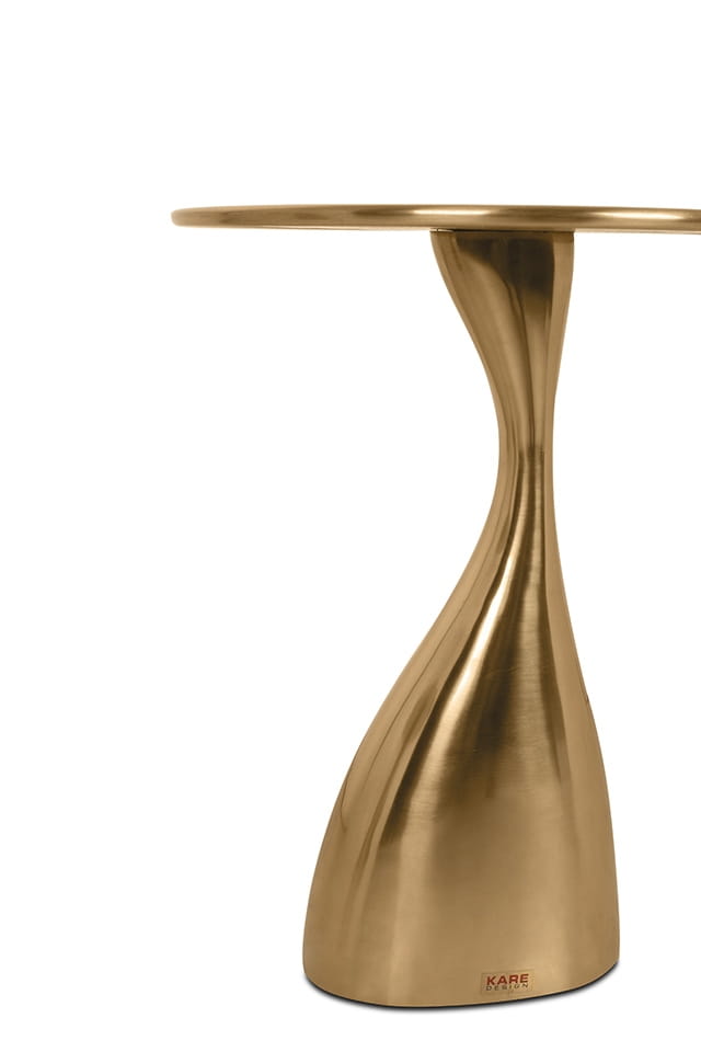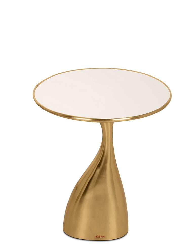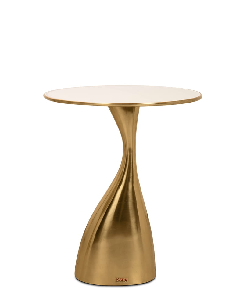 KARE stolik SPACEY 36 złoty. Spacey to designerski oraz niezwykle praktyczny stolik. Oryginalny kształt wykonano ręcznie z aluminium w eleganckim złotym kolorze. Okrągły blat wykończono w jasnym odcieniu z delikatnym połyskiem, który dodaje całości delikatności. Dodatkowym atutem są kompaktowe wymiary, które sprawdzą się nawet w najmniejszym pomieszczeniu. Stolik Spacey doskonale sprawdzi się w nowoczesnych wnętrzach również jako element dekoracyjny. Wymiary: wys. 46 cm / szer. 36 cm / gł. 36 cm Blat: śr. 36 cm Waga netto: 3,1 kg.