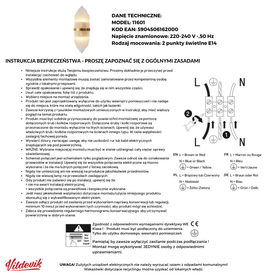 miejsce na 2 żarówki E14 - nie są w zestawie