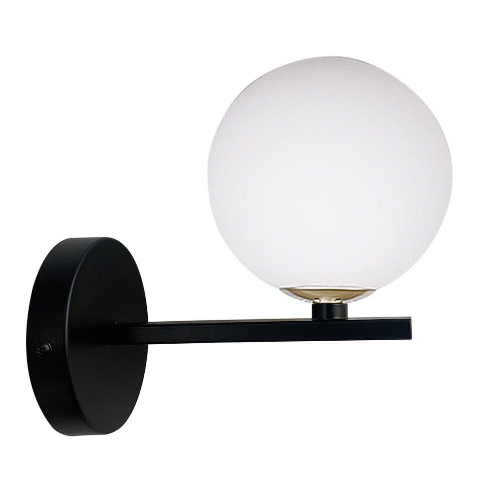 Kama lampa kinkiet czarny+złoty 1x28 g9 klosz biały