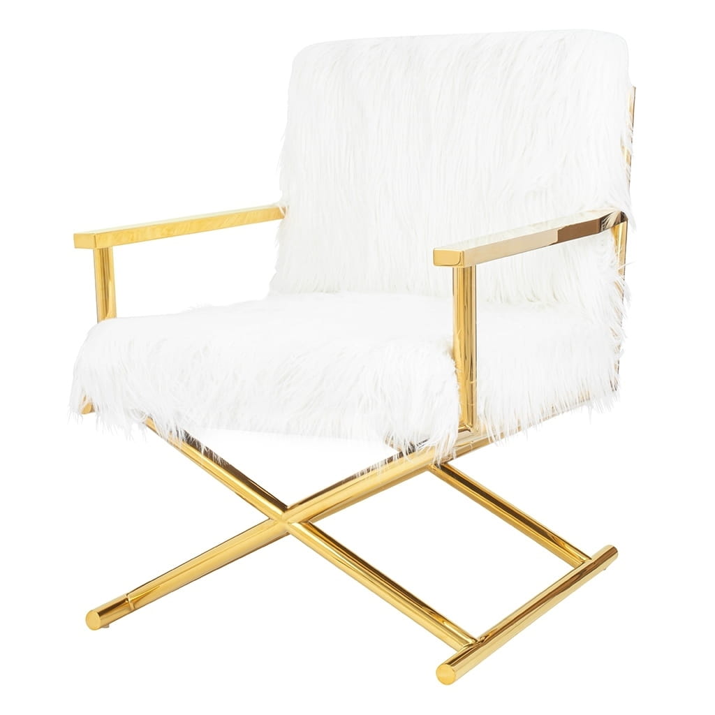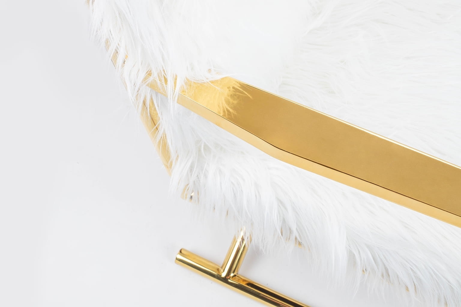 KARE fotel MR.FLUFFY biały / złoty.Nowoczesna, awangardowa propozycja od marki Kare Design.Pianka poliuretanowa pokryta miękką, przyjemną tkaniną wykonaną z poliestru w połączeniu ze stalową, chromowaną podstawą w kolorze złotym tworzywyjątkowy pod względem wyglądu i komfortu fotel Mr. Fluffy. Puszysty futrzak doskonale odnajdzie się w stylu glamour.Wymiary: wys. 87 cm / szer. 68 cm / gł. 70 cmWysokość do krawędzi siedziska: 49 cmMaksymalne obciążenie: 150 kgSposób wysyłki: paleta.