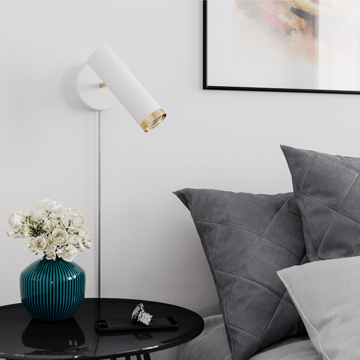 Kinkiet Plus marki By Rydens będzie estetycznym i eleganckim dopełnieniem sypialni lub pokoju dziennego. Możliwość swobodnej zmiany kierunku świecenia jest niewątpliwą zaletą, która pomoże w aranżacji pomieszczenia. Biały, matowy kolor, który dopełniony jest złotymi elementami stwarza wrażenie obcowania z nowoczesnym i stylowym produktem. Kinkiet Plus posiada osobny włącznik, który jest umiejscowiony w łatwo dostępnym miejscu – z tyłu obudowy. Kinkiet Plus jest wykonany z wytrzymałego metalu. Żarówka GU10 nie jest częścią zestawu.