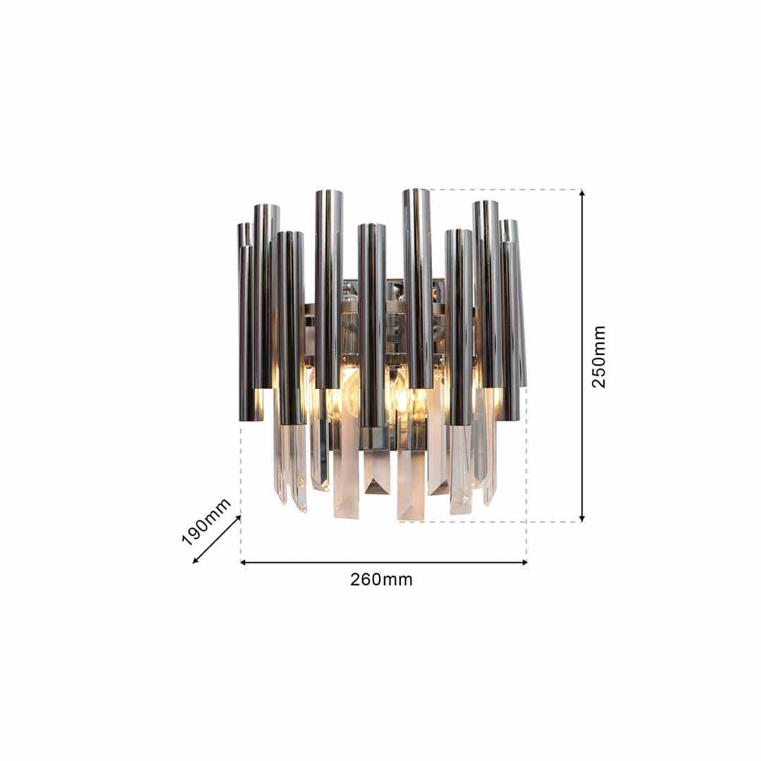 Wyrazisty design kinkietu MADISON CHROME sprawia, że pięknie wypełni on każde wnętrze, nadając mu niecodzienny charakter. Lampa ta posiada dwa punkty świetlne. Wykonano ją z wysokiej jakości tworzyw: metalu i kryształu, które wspaniale się uzupełniają, tworząc przyjemną dla oka grę światłem. Model ten doskonale sprawdzi się w przestronnych przestrzeniach loftowych lub utrzymanych w stylu glamour. Będzie dobrze wyglądać w towarzystwie bieli, czerni, szarości, a także bardziej wyrazistych kolorów, jak czerwień lub zieleń.