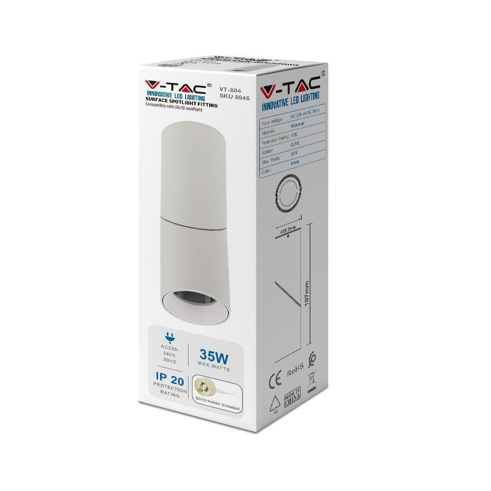 Kinkiet Zewnętrzny Oprawa V-Tac Aluminiowa Gu10 Okrągła Natynkowa Tuba Biała Vt-804 3 Lata Gwarancji