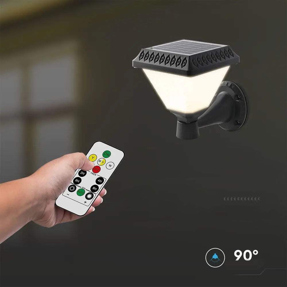 Kinkiet Zewnętrzny V-Tac Solarny Z Pilotem 3W1 Ip44 Czarny Kwadrat Vt-972 3000K-4000K-6400K 75