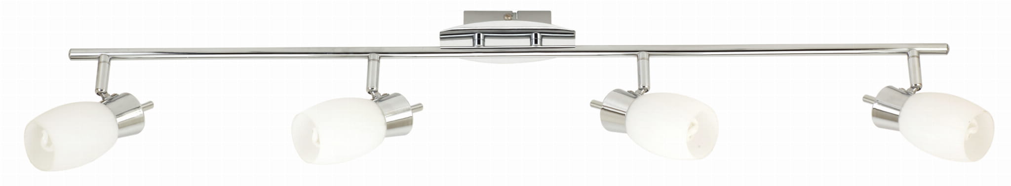 Moc max (W): 4x40 Materiał: podstawa stalowa, klosz szklany Kolor: chromowy, klosz biały