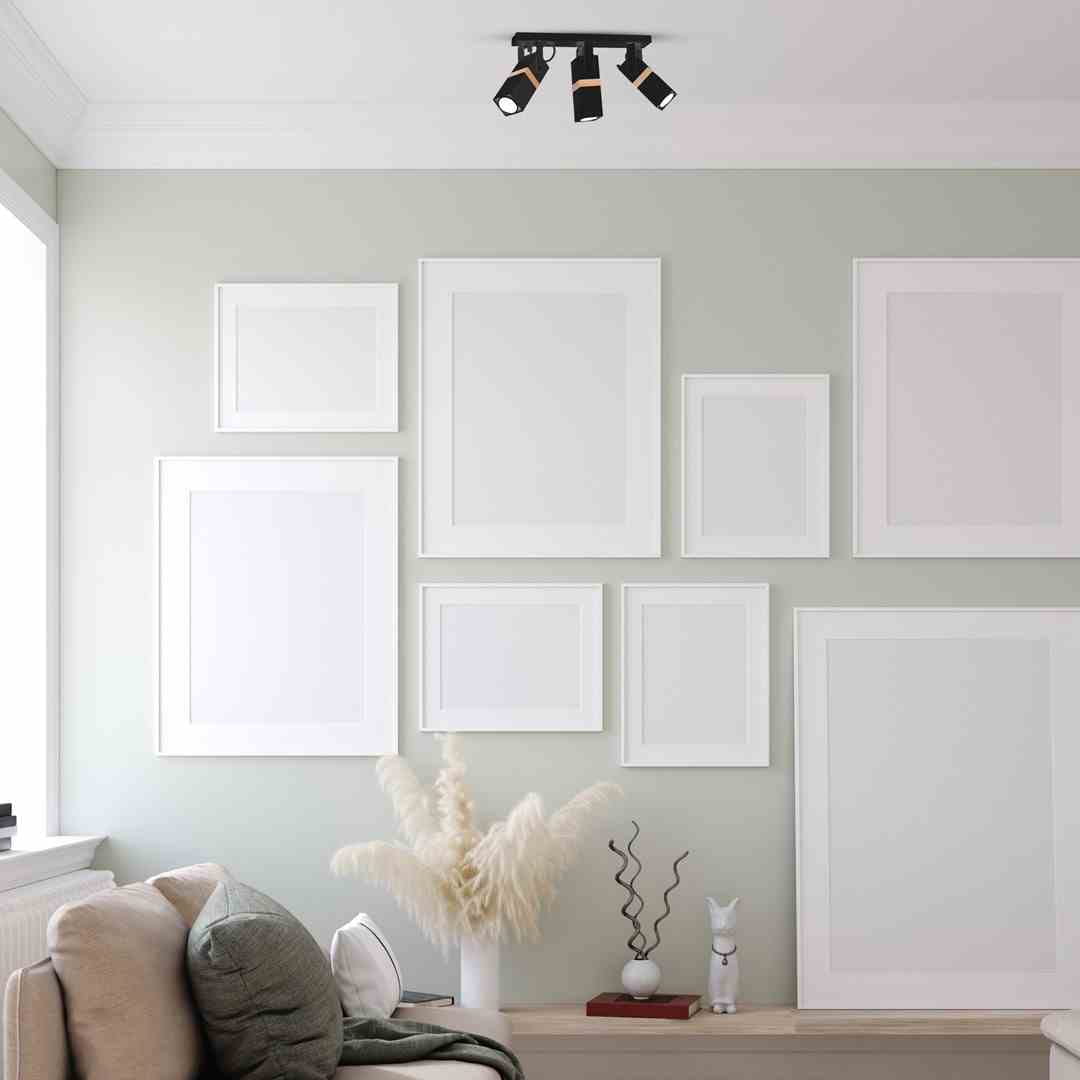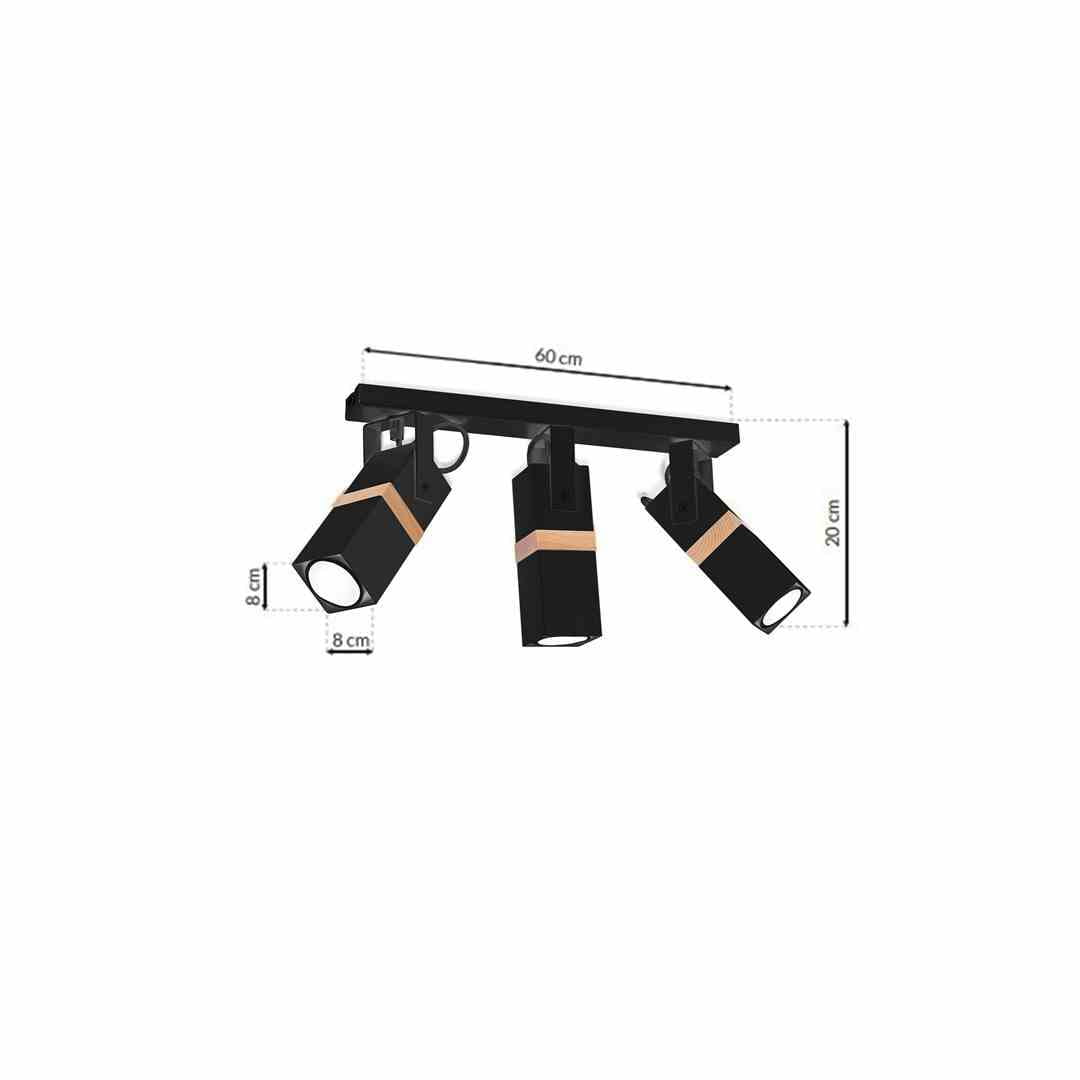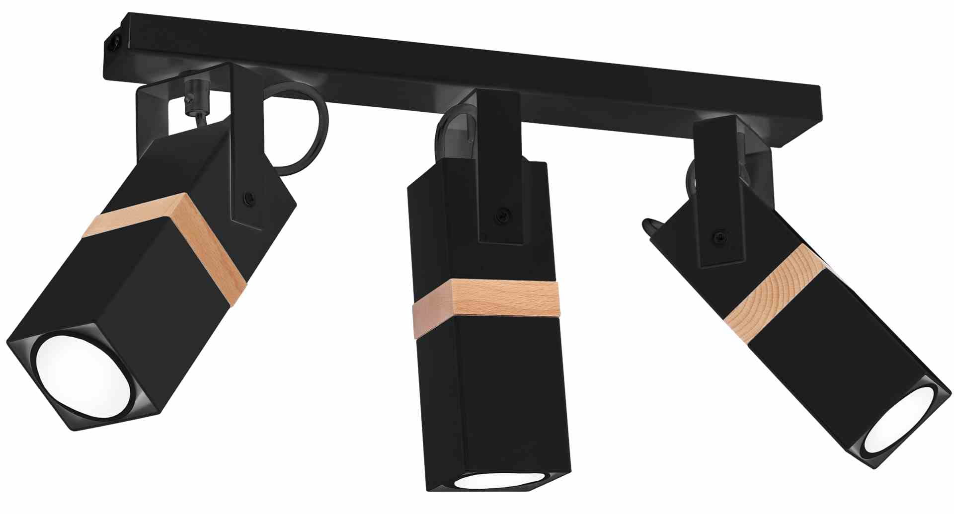• lampa sufitowa z trzema punktami świetlnymi czarna z jasnym drewnem MLP5402