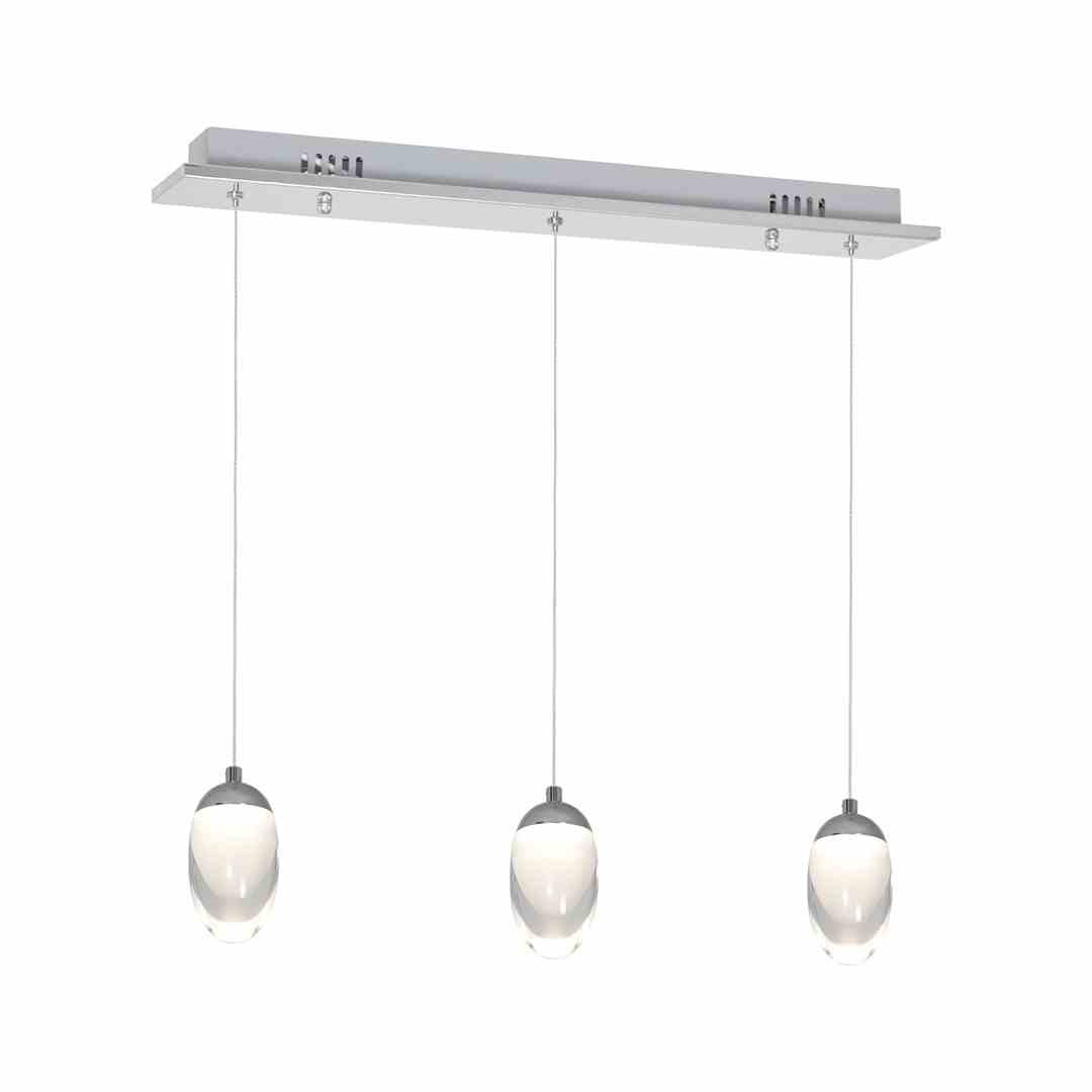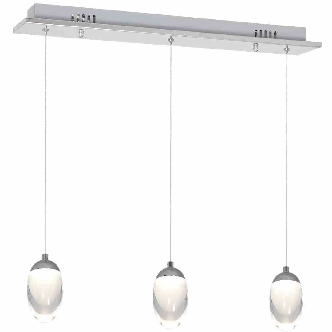 "Prezentowana wisząca lampa sufitowa posiada 3 punkty światła, a każdy z nich ma możliwość osobnej regulacji na wysokość od 20 do 100 cm. To praktyczne i proste w obsłudze rozwiązanie umożliwia bezproblemowe dopasowanie lampy do wysokości pomieszczenia. Długość lampy to jedynie 50 cm, z kolei szerokość 10 cm. Lampę wyposażono w zainstalowane na stałe moduły LED o mocy 15 W, któremu odpowiada 79 W tradycyjnej żarówki. Przyjemna dla oka barwa 4000 K ma jasność 1050 lm. Lampa została wykonana z metalu i akrylu. W zestawie znajdują się niezbędne elementy do jej montażu.