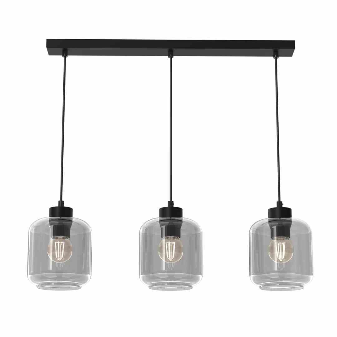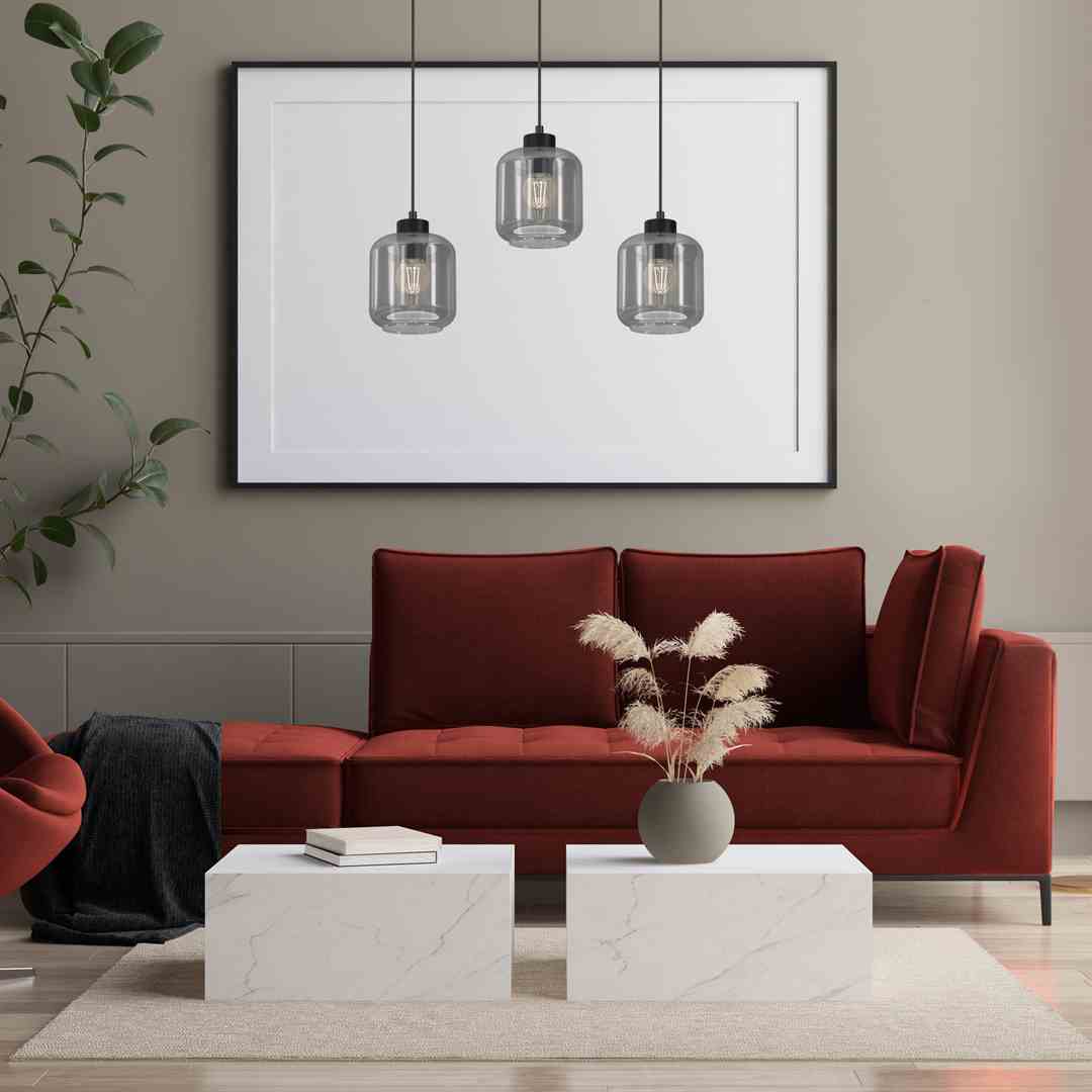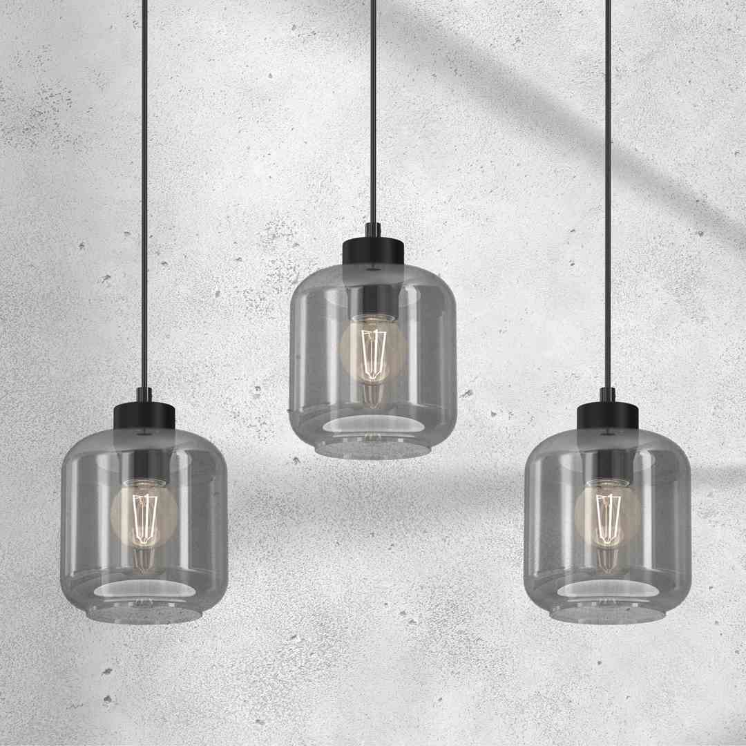 Zwisające klosze w dymionym wybarwieniu z czarnym wykończeniem to ciekawa alternatywa dla bardziej stonowanych i jednolitych propozycji oświetlenia do biura lub mieszkania. Do lamp pasują żarówki led E27 z dużym gwintem. W ofercie dostępne są lampy z symetrycznym ustawieniem kloszy lub takie, które mają je ustawione nieregularnie - niektóre są dłuższe, inne krótsze. Czarne wykończenie sprawia, że lampy będą współgrały tak naprawdę z większością odcieni ścian. Wszystkie z dostępnych w ofercie lamp są bardzo łatwe w montażu i zainstalowaniu na suficie. Lampy z dymionymi kloszami i czarnymi wykończeniami to ponadczasowa klasyka w kategorii oświetlenia. Tego typu lampy sprawdzą się w jaśniejszych pomieszczeniach, z dostępem do światła dziennego. Ciemna kolorystyka lamp sprawia, że będą one lepiej współgrały z jasnymi odcieniami ścian. Klosze są w całości dymione i współpracują z żarówkami led E27 z dużym gwintem. Dzięki w pełni klasycznym proporcjom świetnie sprawdzą się w nieco wyższych pomieszczeniach. Lampa zapewnia równomierne rozchodzenie się światła i miłe dla oka doświetlenie całej powierzchni stołu, nad którym będzie prezentowała się najlepiej. Kombinacja przydymionego szkła i elementów metalowych w czarnym macie, pasuje do wielu przestrzeni mieszkalnych i biurowych.