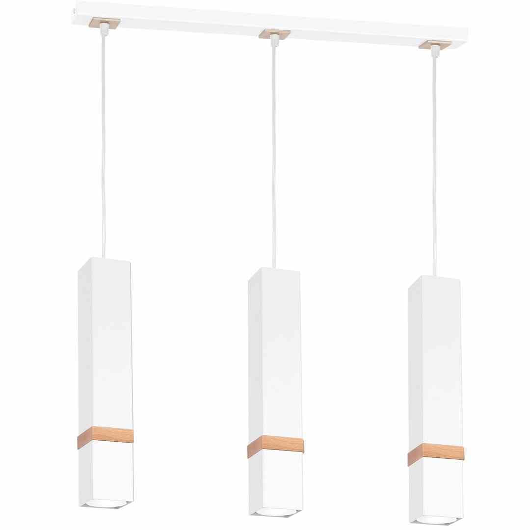 • lampa wisząca z trzema punktami świetlnymi biała z jasnym drewnem MLP5409