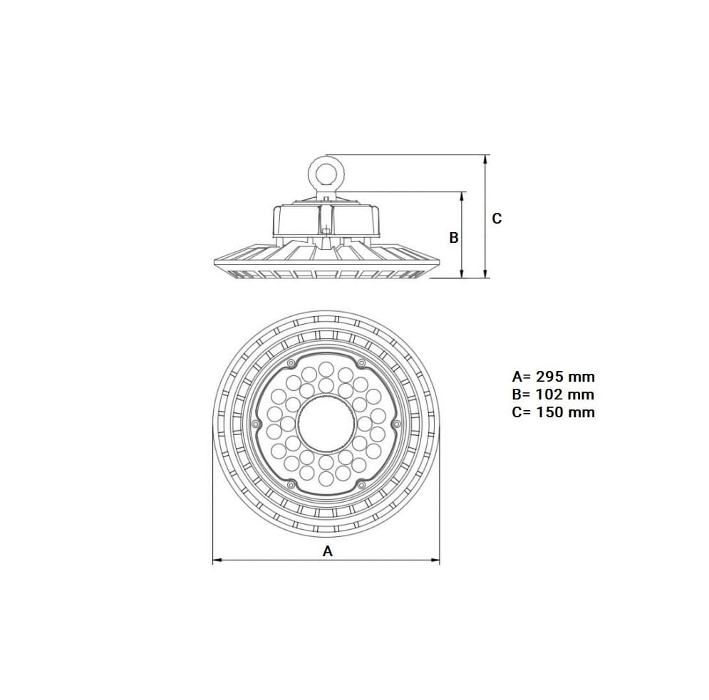 Nasza lampa Highbay to idealne rozwiązanie, które spełni Twoje potrzeby oświetleniowe w sposób efektywny i energooszczędny. Z wysoką wydajnością świetlną 120 lm/W, zapewnia jasne i równomierne oświetlenie, które poprawi efektywność pracy w Twojej przestrzeni produkcyjnej.