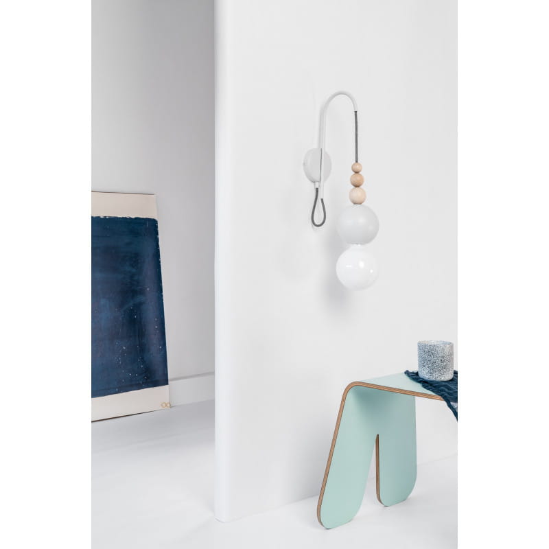 • lampa z możliwością montażu na ścianie • długość kabla 80cm • kolor jasnoszary • oplot B03 bazaltowy pył bawełniany • metalowa nakładka oprawki żarówki • metalowa maskownica • kule drewniane wykonane z drewna bukowego • przewód dwużyłowy 2 X 0.75mm2 • w zestawie nie ma żarówki (kup)