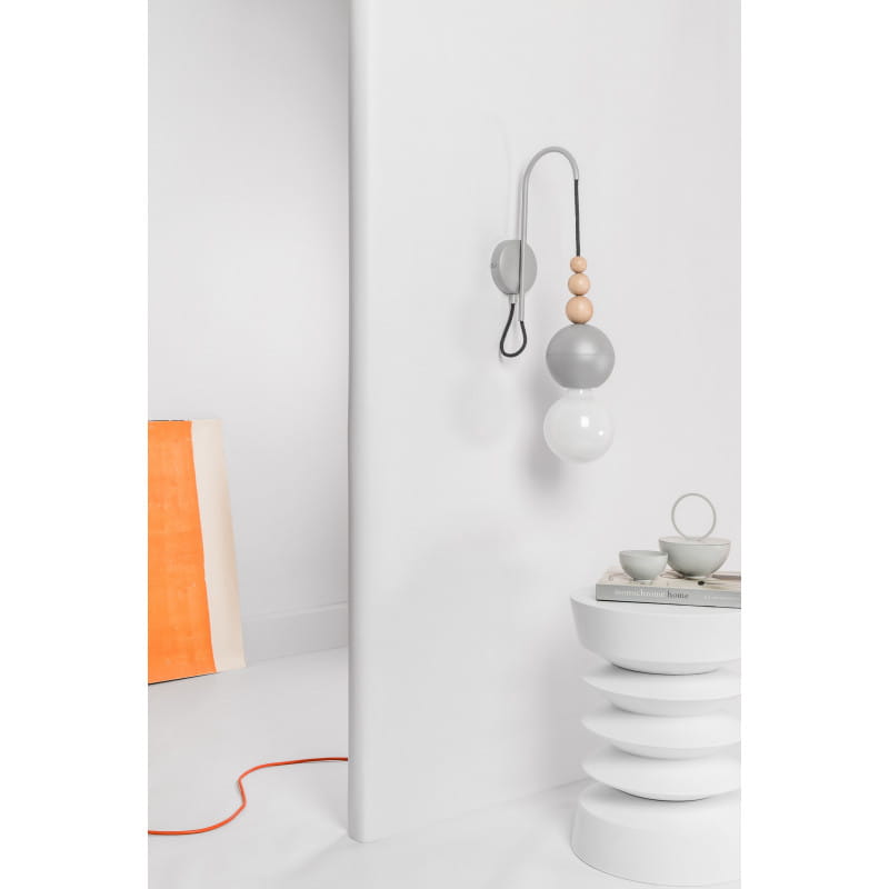 • lampa z możliwością montażu na ścianie • długość kabla 80cm • kolor szary z drobinkami srebra • oplot B03 bazaltowy pył bawełniany • metalowa nakładka oprawki żarówki • metalowa maskownica • kule drewniane wykonane z drewna bukowego • przewód dwużyłowy 2 X 0.75mm2 • w zestawie nie ma żarówki (kup)