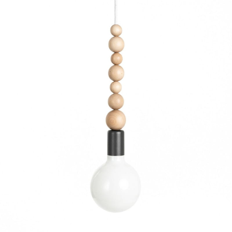 • lampa z możliwością montażu na ścianie • kolor ciemnoszary strukturalny z drobinkami srebra • oplot bawełniany B09 biała perła • długość kabla 80cm • metalowa nakładka oprawki żarówki • metalowa maskownica • kule drewniane wykonane z drewna bukowego • przewód dwużyłowy 2 X 0.75mm2 • w zestawie nie ma żarówki (kup)