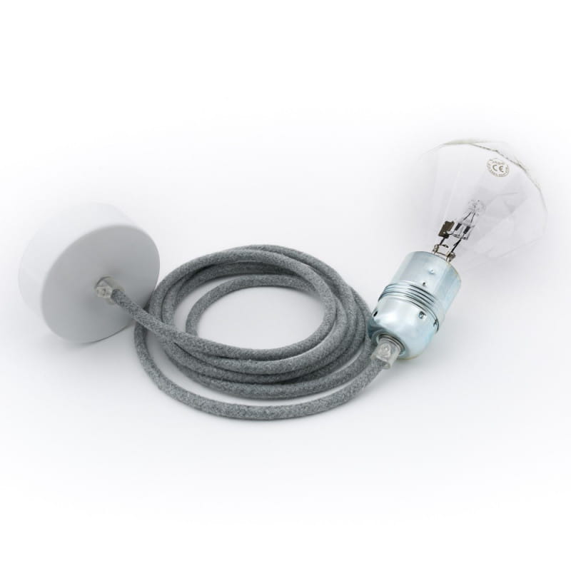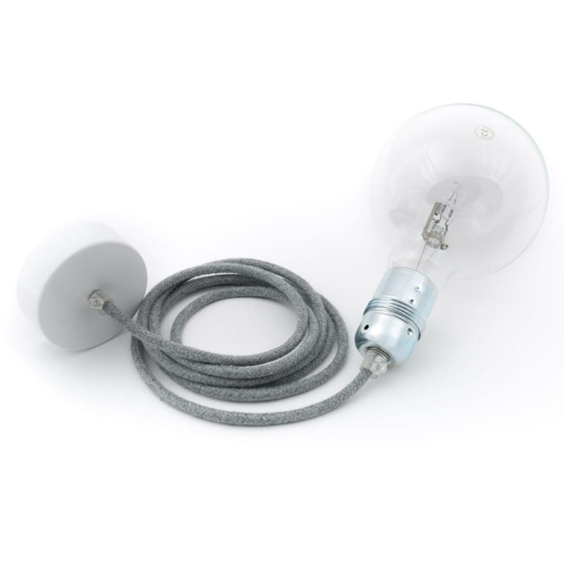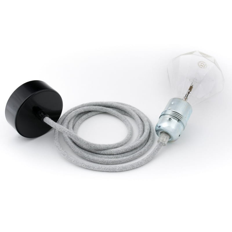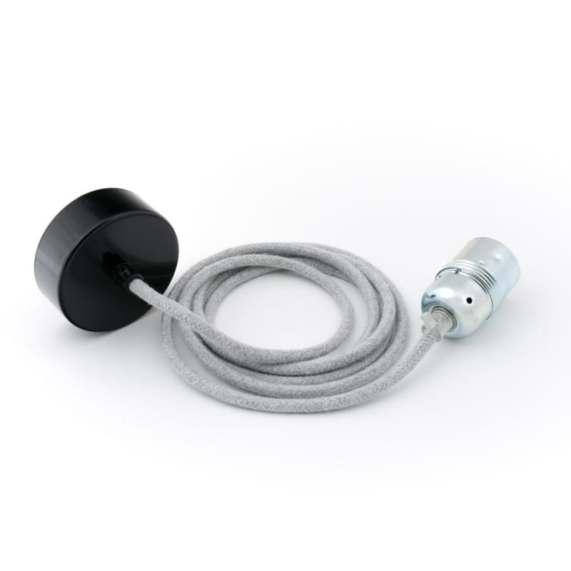 • lampa wisząca • długość kabla 1m • możliwość wybrania dodatkowej długości kabla • przewód bawełniany B02 srebrzysta skała • metalowa oprawka żarówki z pierścieniem w kolorze cynku • metalowa maskownica sufitowa lakierowana w czarnym z kostką elektryczną i haczykiem • blokady kabla • gwint E27 • giętki przewód 2X0.75mm2 • w zestawie nie ma żarówki (kup)