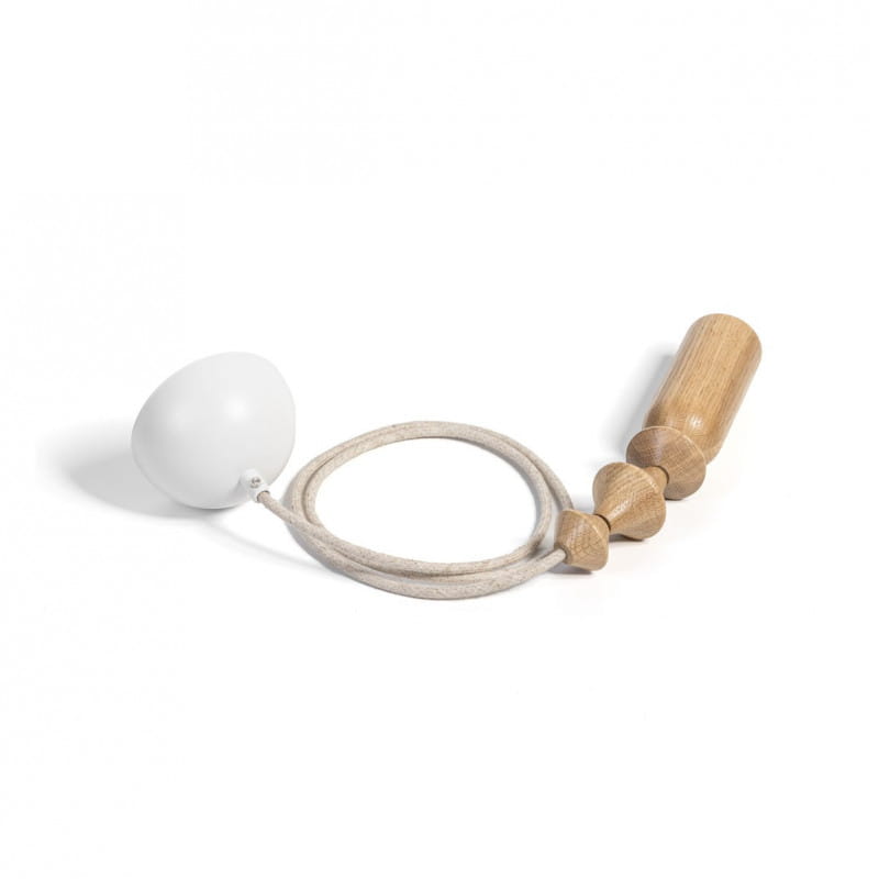 Lampa wisząca z dębowymi koralikami Loft Tammi biała maskownica i przewód w lnianym oplocie KOLOROWE KABLE