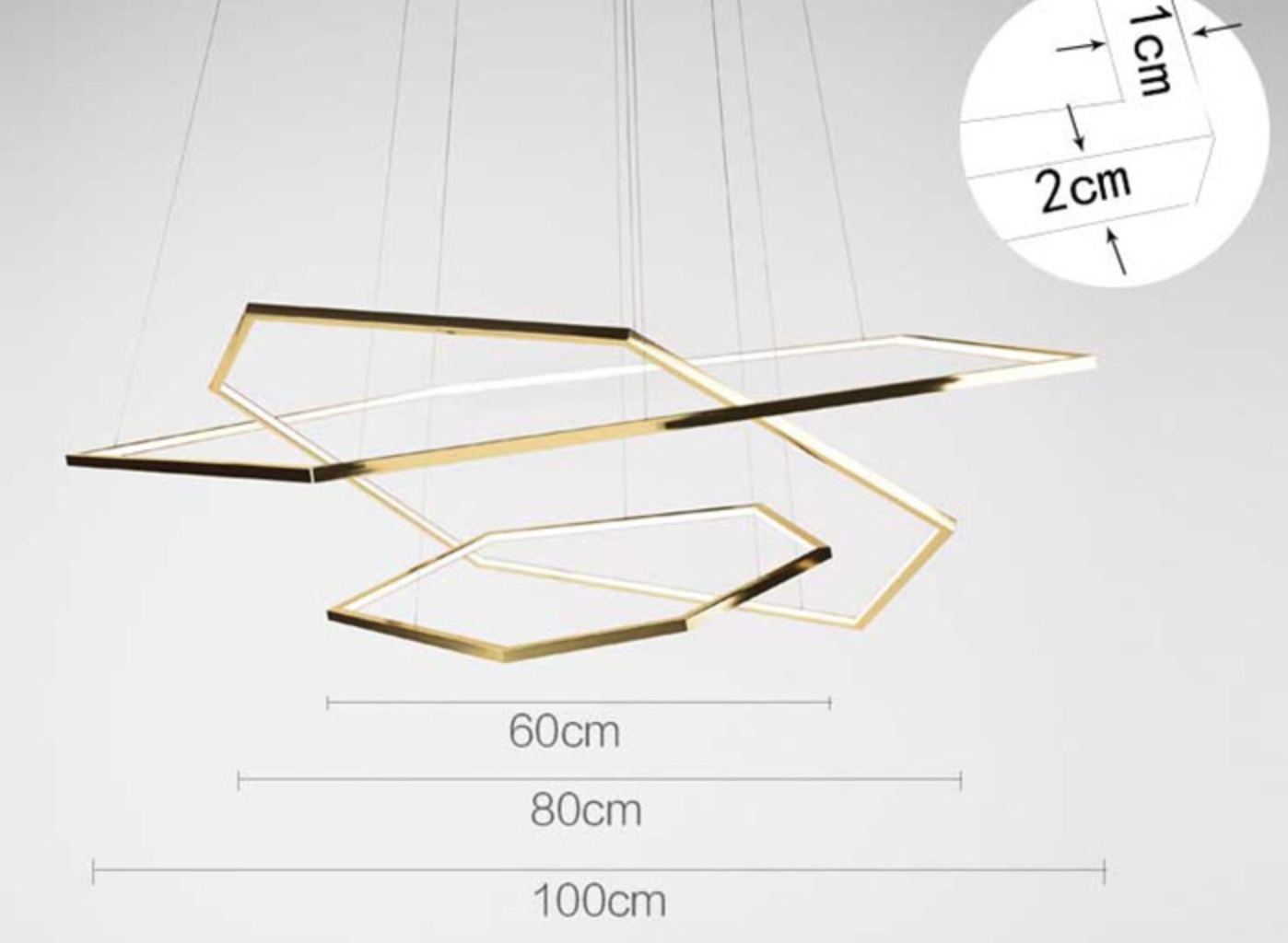 Lampa złota LED XXL Geometric 100cm + 80cm +60cm 10609