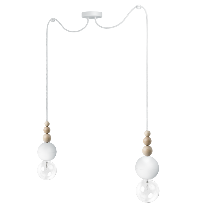 • lampa wisząca • długość całkowita 1,7m • oplot B09 biała perła bawełniany • metalowa kula lakierowana w kolorze białym strukturalnym • 2 uchwyty • metalowa maskownica sufitowa lakierowana w kolorze białym strukturalnym z kostką elektryczną i haczykiem • kulki wykonane z drewna bukowego • 2 x blokada kabla • gwint E27 • przewód dwużyłowy 2X 0.75mm2 • w zestawie nie ma żarówki (kup)