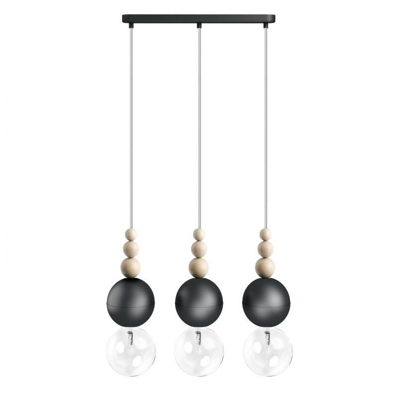 Loft Bala 3L czarna strukturalna lampa wisząca KOLOROWE KABLE