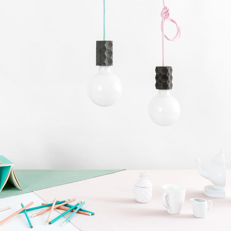 Loft Concre A betonowa lampa wisząca z różowym przewodem KOLOROWE KABLE