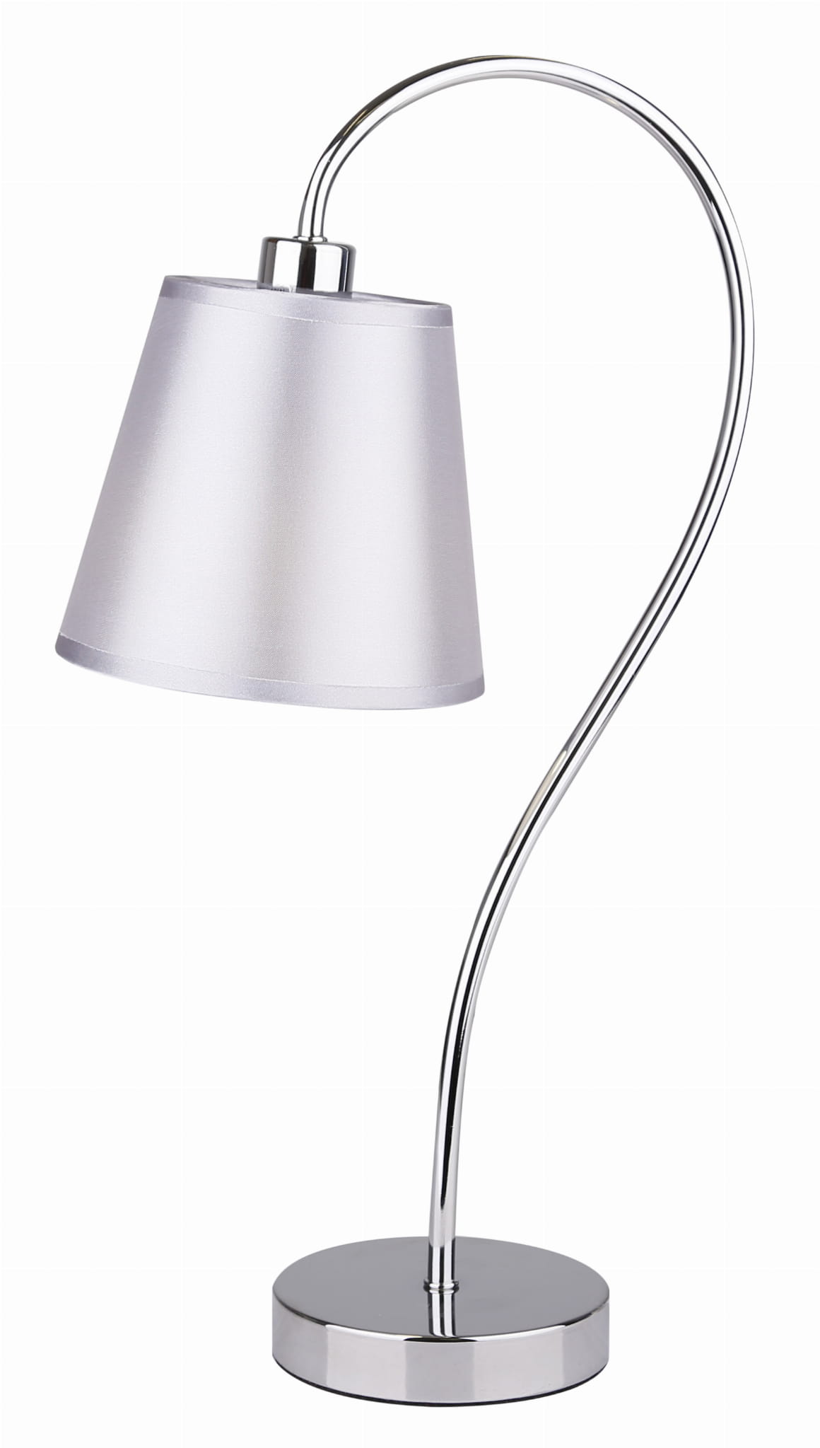 Elegancka w swej prostocie lampka gabinetowa, stożkowy abażur z tkaniny - od strony wewnętrznej usztywniony przez PCW. Szaro srebrna kolorystyka abażura w połączeniu z błyszczącym chromem podkreśla elegancję, dedykowana do nowoczesnych wnętrz.