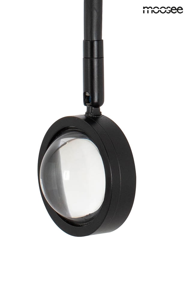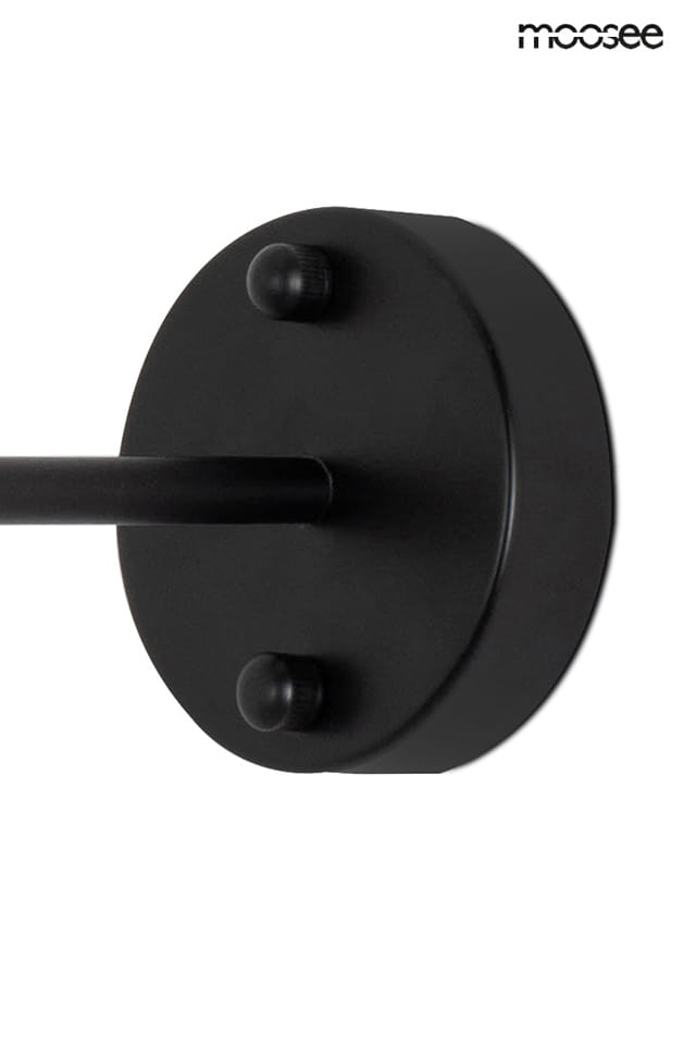 MOOSEE lampa ścienna AXEL czarna. Fantastyczny, wielofunkcyjny kinkiet w nowoczesnej formie. Całość wykonano w wyniku połączenia stali oraz szkła w czarnej kolorystyce. Głównym atutem jest ruchomy, okrągły klosz o 360 stopni oraz możliwość regulacji góra, dół. Axel to produkt, który dopełni wygląd Twojego wnętrza. Doskonale spisze się w sypialni przy szafkach nocnych oraz innych pomieszczeniach. Światło: LED 3 W / 240 lm / 3000 K Oprawa: wys. 30 cm / szer. 9,5 cm / gł. 40 cm Klosz : śr. 7 cm Mocowanie: wys. 3,5 cm / śr. 9,5 cm Montaż: instalacja ścienna Wymiary opakowania: 45 cm / 25 cm / 18 cm Waga netto: 0,5 kg
