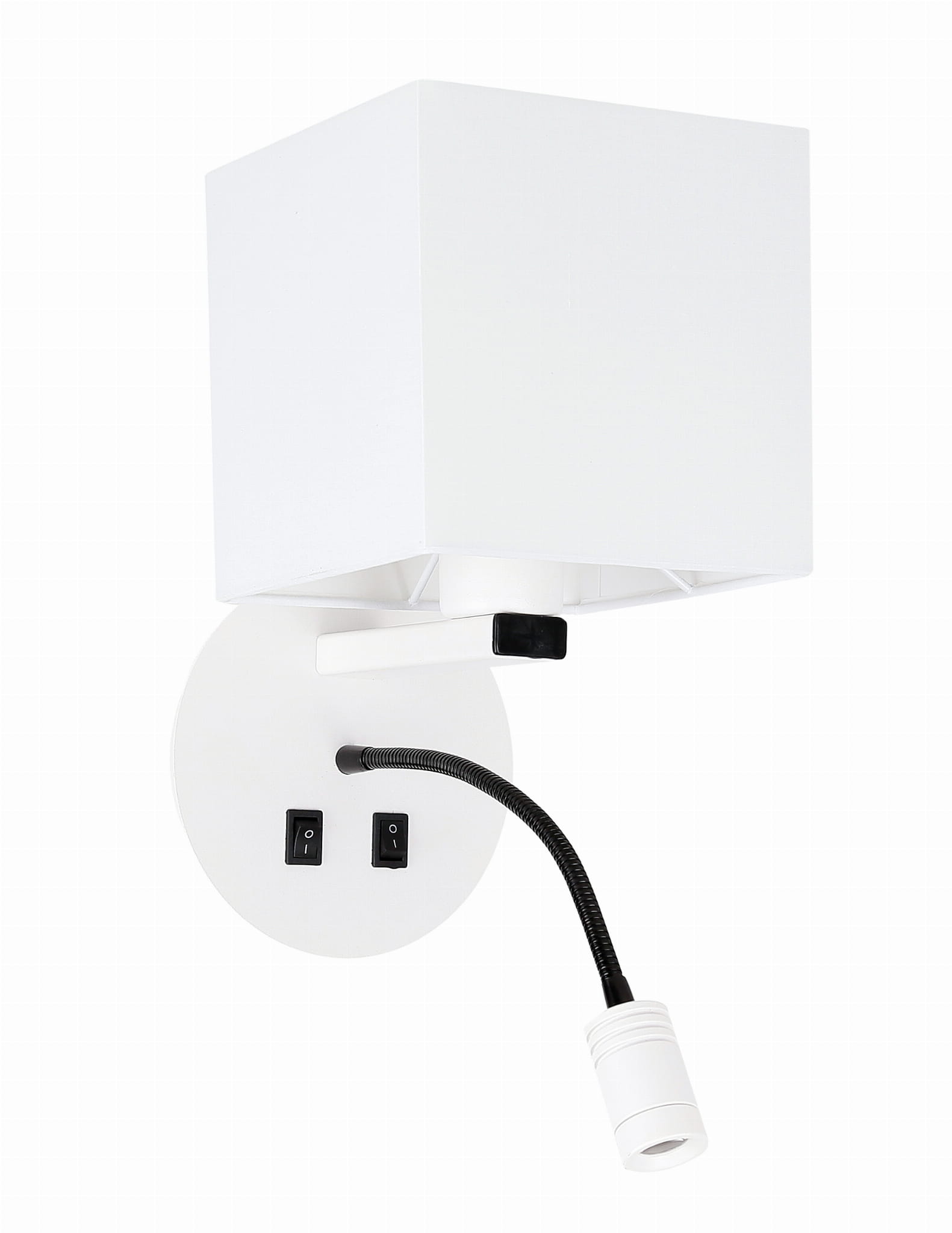 Nie zawiera głównego źródła światła Zawiera dodatkowe źródło światła niewymienne LED temperatura barwowa (K): 3200 trwalość LED (H): 20000 strumień światła LED (Lm): 200 Trzonek: E27 Moc max (W): 40+3 Materiał: podstawa stalowa, abażur tkanina+PCV Kolor: biały
