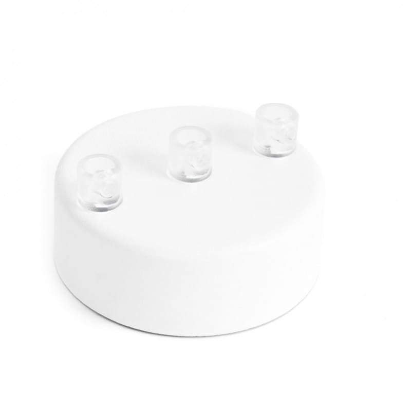 • metalowa maskownica sufitowa lakierowana w kolorze białym strukturalnym • możliwość zamontowania trzech kabli • średnica ~80mm • wysokość ~30mm • przezroczyste blokady kabli w zestawie • doskonale dopasowana do kabli 2 X 0.75mm2