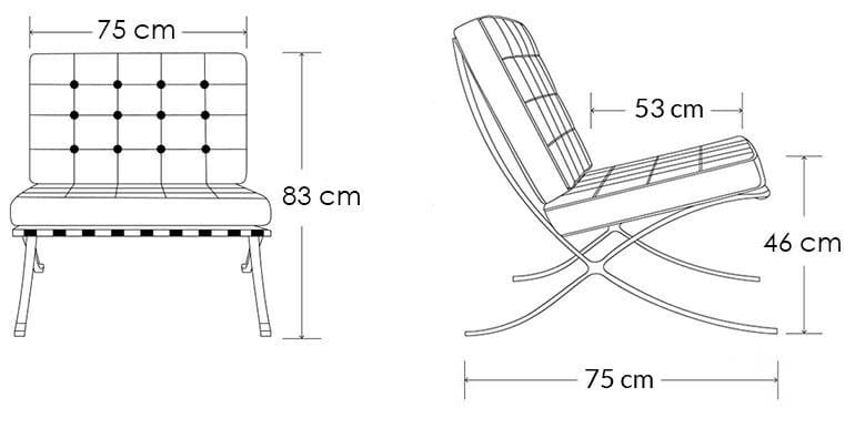 Fotel Barcelon marki Modesto Design stanowi jednoosobową mini sofę, której szerokość 75 cm pozwala wygodnie się rozsiąść i wypocząć. Siedzisko jest na wysokości 46 cm i zostało wykonane w całości z ekoskóry w kolorze czarnym. Z kolei stelaż i nóżki fotela zrobione są ze stali nierdzewnej olerowanej, co dodaje elegancji. Dodatkowo wewnątrz całego stelaża jest stalowy rdzeń który wzmacnia konstrukcję i zapewnia stabilność. Klasyczny i minimalistyczny styl powoduje, że mebel będzie pasował do dużej ilości wnętrz, w tym tych bardzo eleganckich, klasycznych, czy w stylu glamour. Wymiary: wys. 86 cm / szer. 76 cm / gł. 80 cmWysokość do krawędzi siedziska: 46 cmSiedzisko: szer. 76 cm / gł. 55 cmOparcie: wys. 55 cm / szer. 76 cmPoduszka: gr. 11 cmRozstaw nóg: szer. 76 cm / gł. 73,5 cmWaga netto: 20 kgWymiary opakowania: 79 cm / 78 cm / 77 - 37 cmSposób wysyłki: paleta.