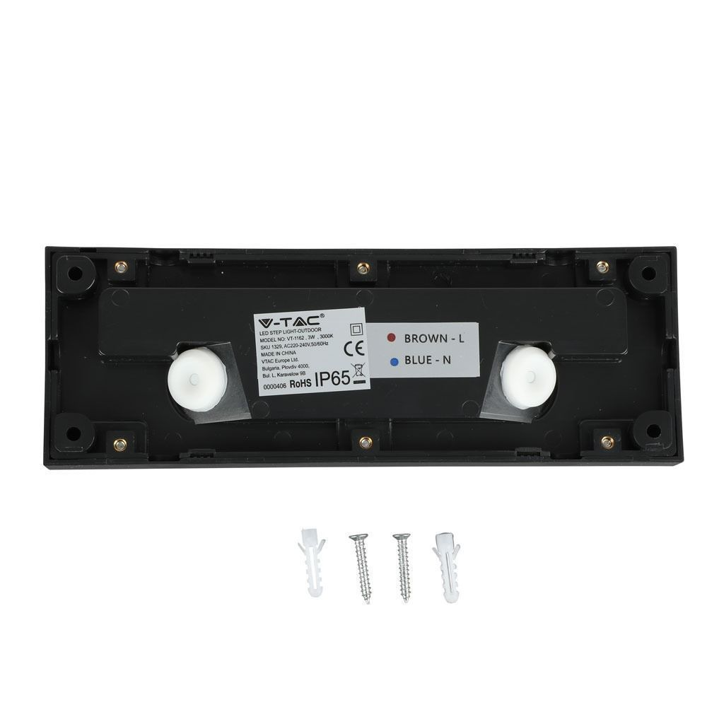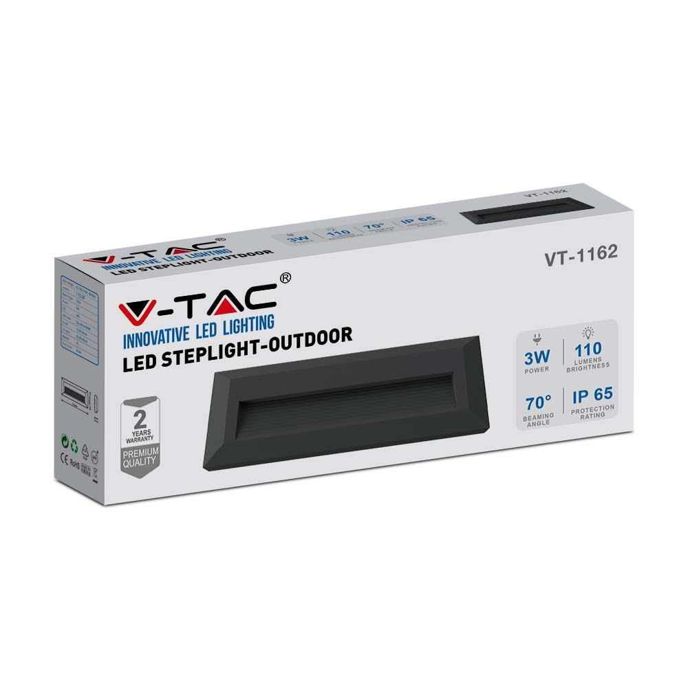 Oprawa Schodowa 3W LED V-TAC Czarna Prostokąt 230V IP65 VT-1162 3000K 110lm