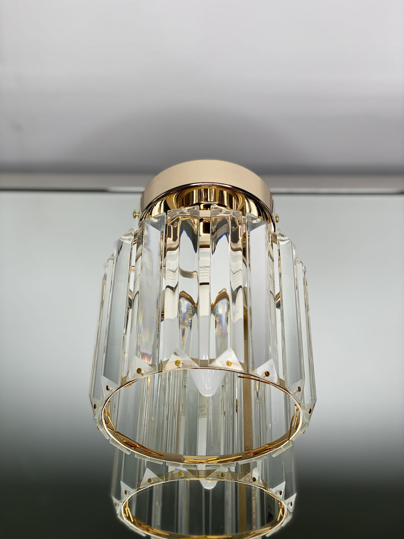 Plafon złoty z prawdziwymi kryształami dopełni idealnie wygląd pomieszczenia w stylu glamour bądź w stylu nowoczesnym.