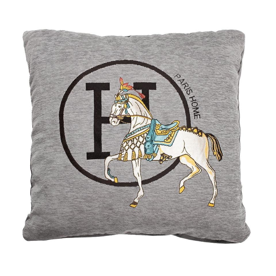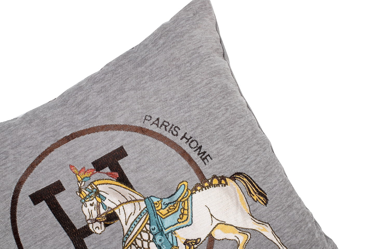 Poduszka dekoracyjna PARIS HOME szara. Subtelna elegancja i wysublimowany design. Wzór zainspirowany został Paryżem - stolicą mody, którą doskonale odzwierciedla dostojność konia. Całość tworzy ciekawą koncepcję, która wzbogaci wygląd Twojego wnętrza. Przód wykonano z tkaniny szenilowej, a tył z przyjemnego w dotyku weluru. Paris Home to również wspaniały pomysł na prezent dla bliskiej osoby. Dostępne różne wersje kolorystyczne. Wymiary: wys. 43 cm / szer. 43 cm / gł. 14 cm.