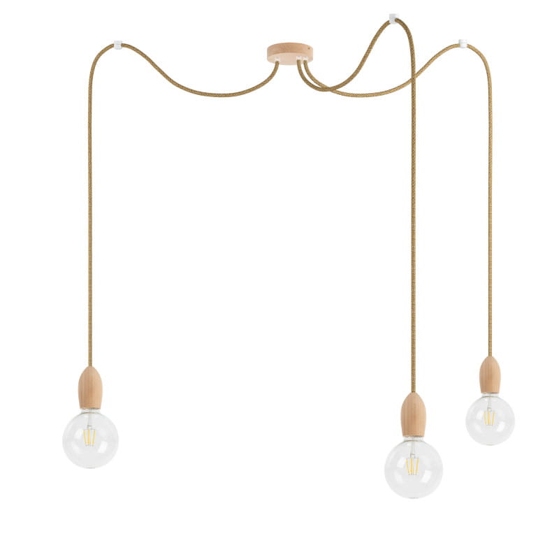 Potrójna drewniana lampa wisząca Loft Multi Eco Line X3 TYP A KOLOROWE KABLE